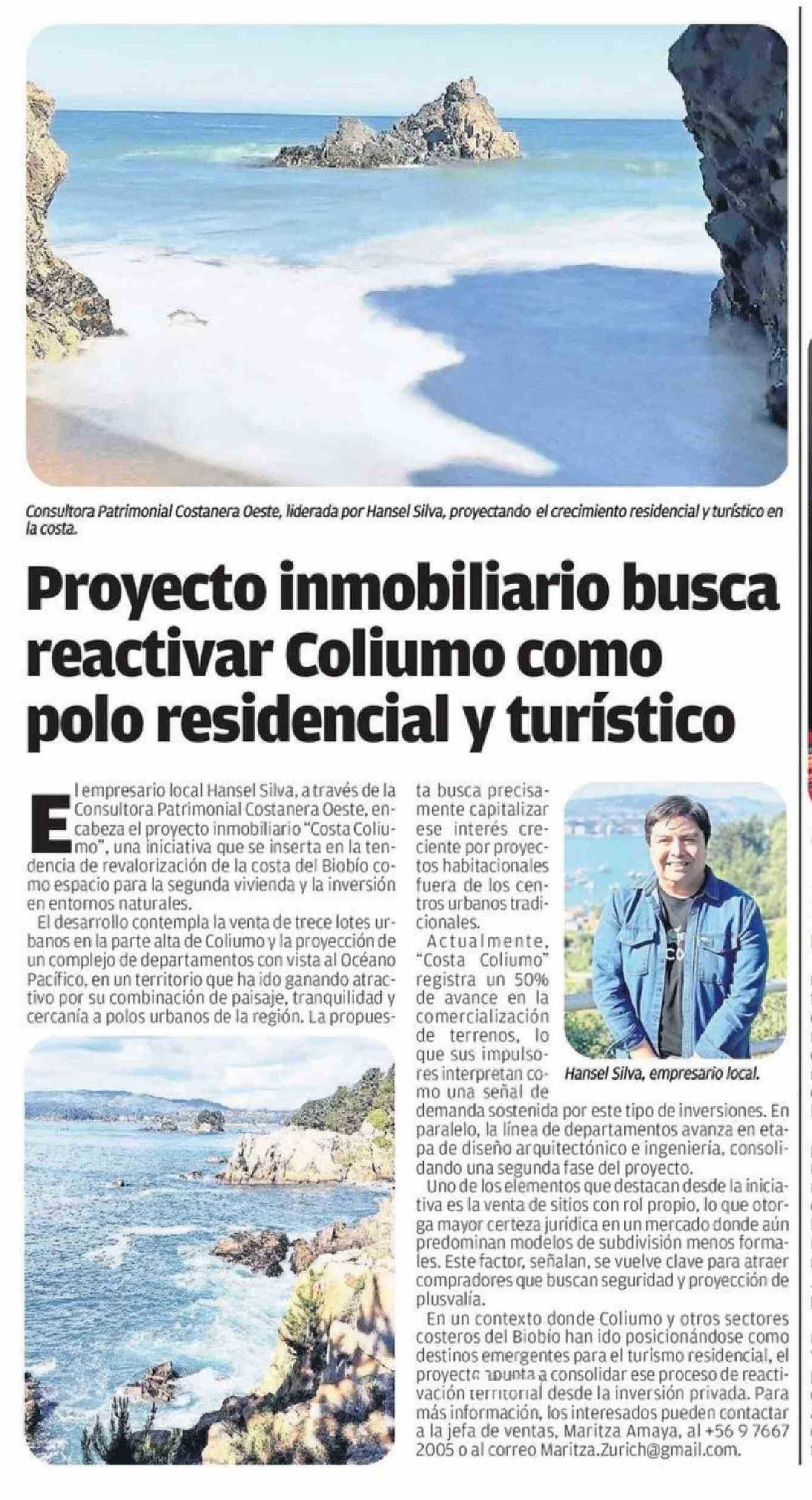 Proyecto inmobiliario busca reactivar Coliumo como polo residencial y turístico