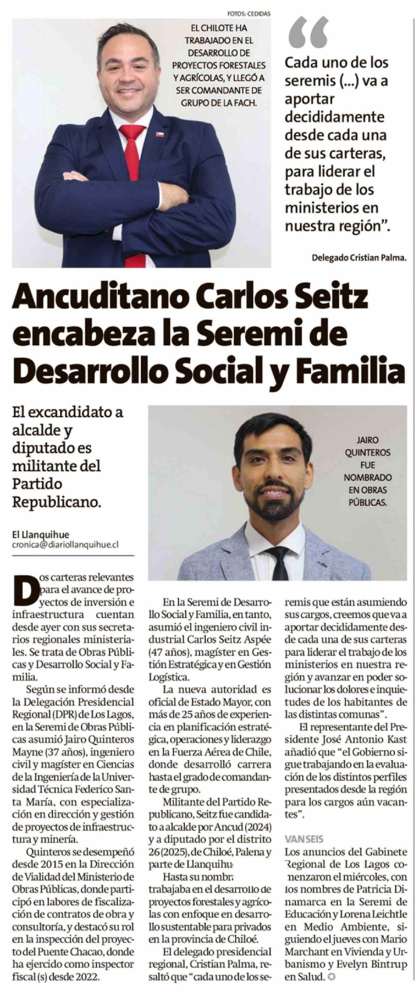 Ancuditano Carlos Seitz encabeza la Seremi de Desarrollo Social y Familia
