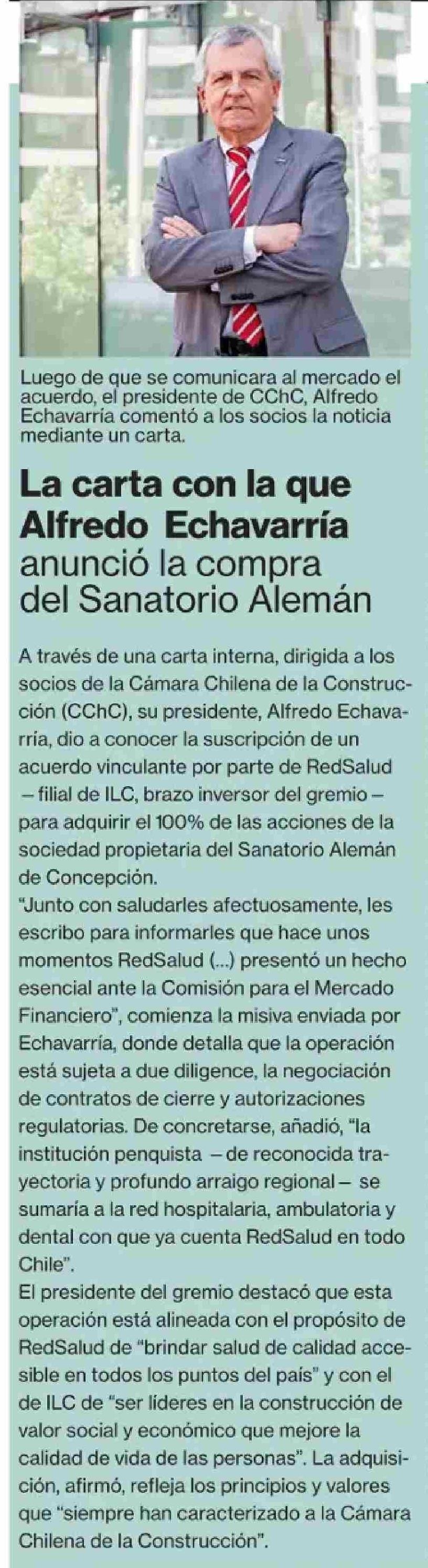 La carta con la que Alfredo Echavarría anunció la compra del Sanatorio Alemán