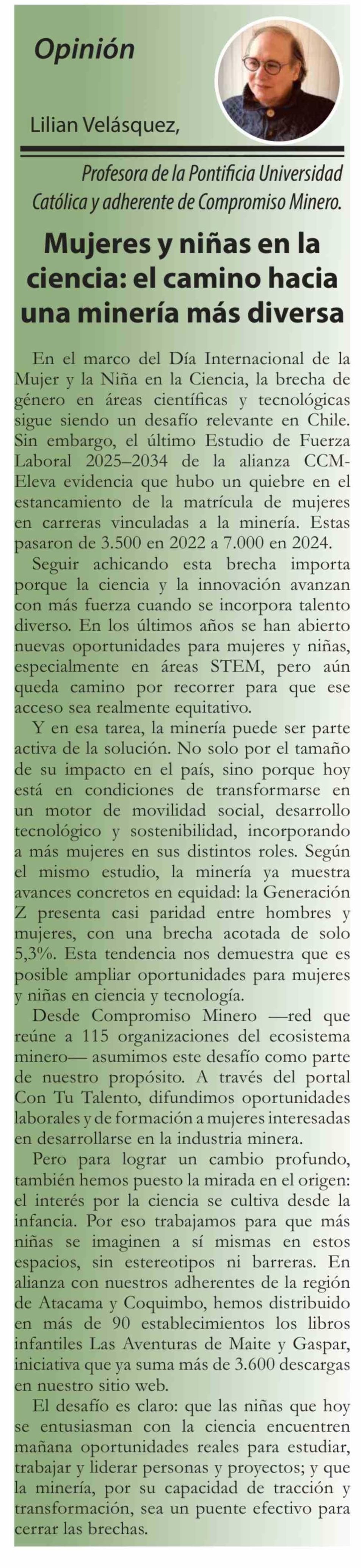 Columnas de Opinión: Mujeres y niñas en la ciencia: el camino hacia una minería más diversa