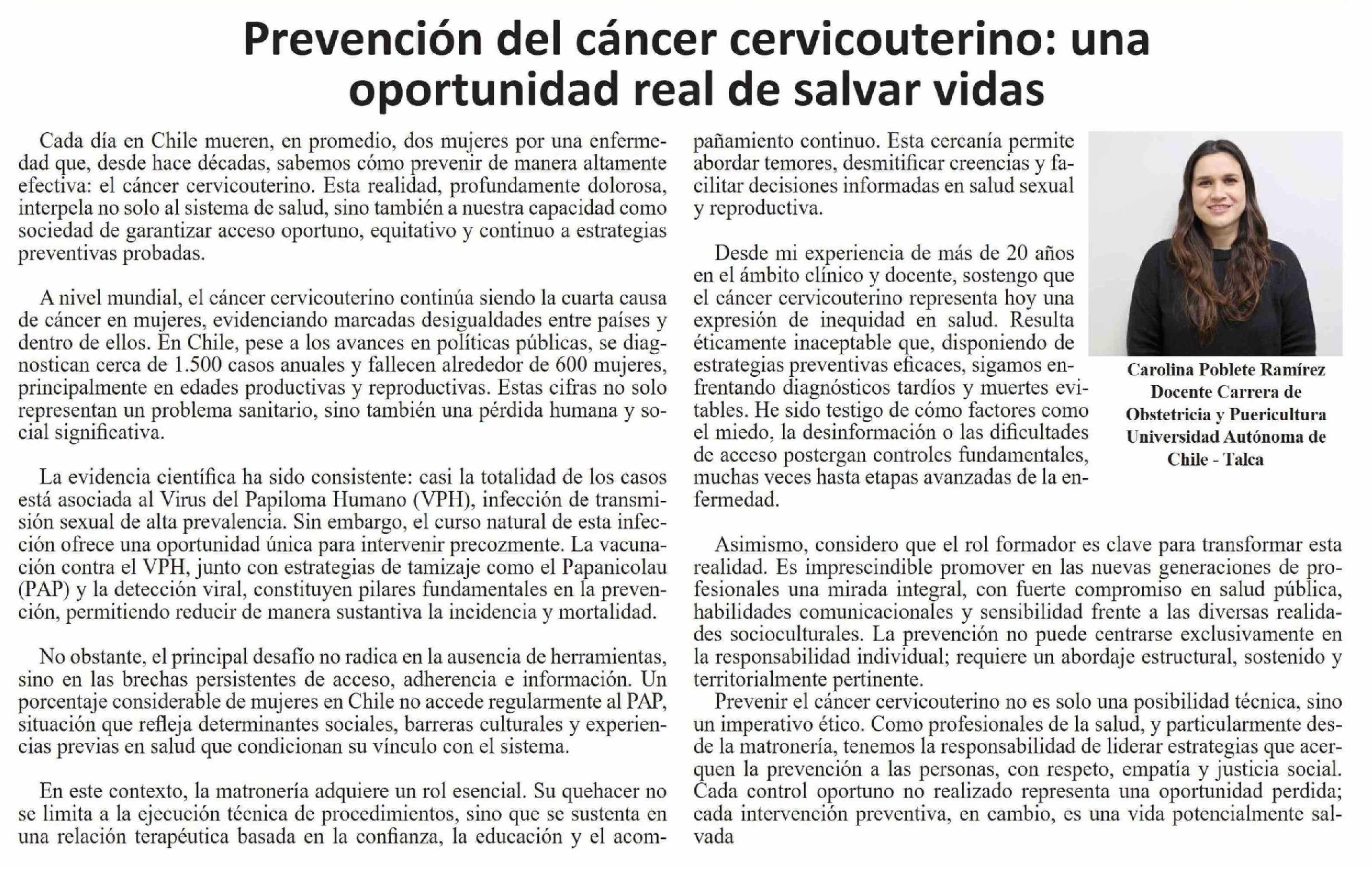 Columnas de Opinión: Prevención del cáncer cervicouterino: una oportunidad real de salvar vidas