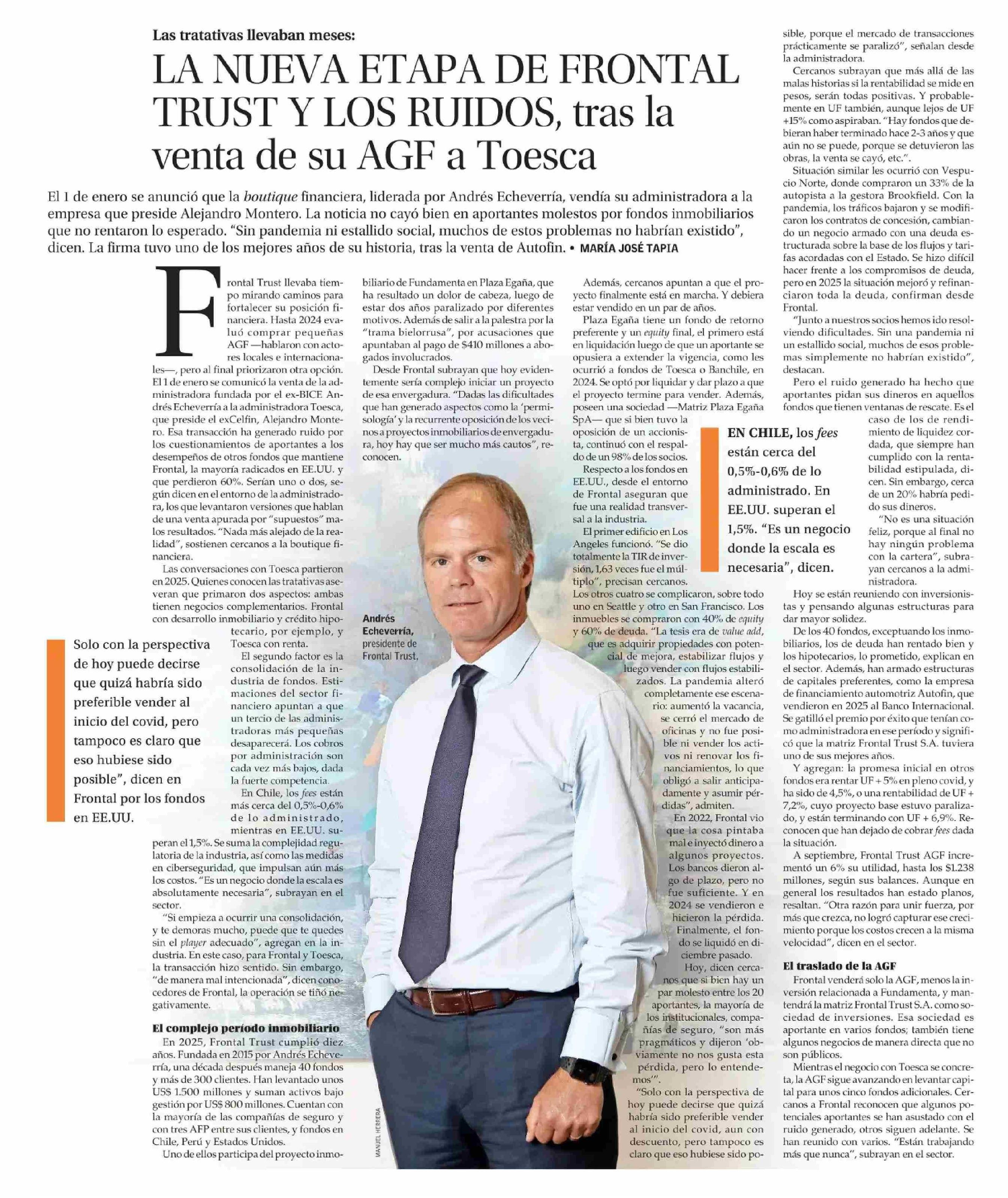 LA NUEVA ETAPA DE FRONTAL TRUST Y LOS RUIDOS, tras la venta de su AGF a Toesca