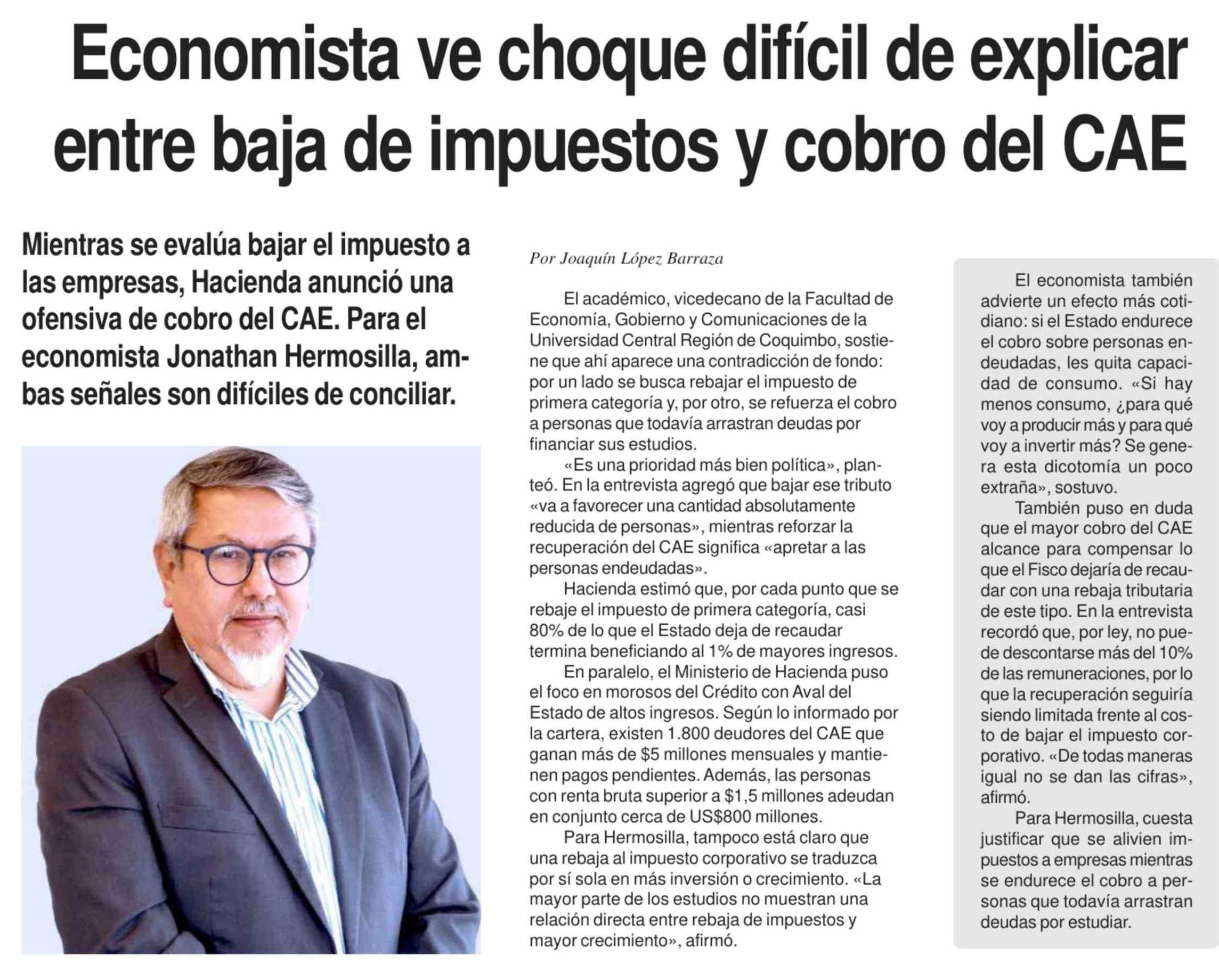 Economista ve choque difícil de explicar entre baja de impuestos y cobro del CAE