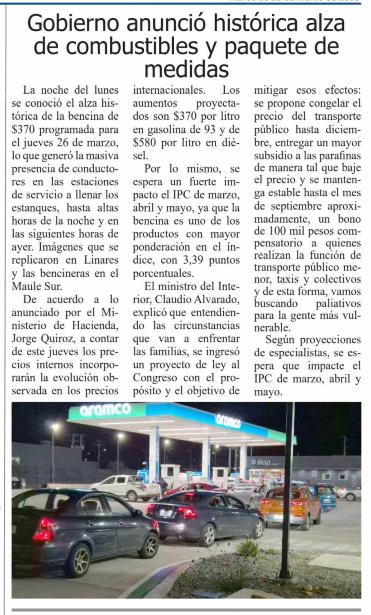 Gobierno anunció histórica alza de combustibles y paquete de medidas