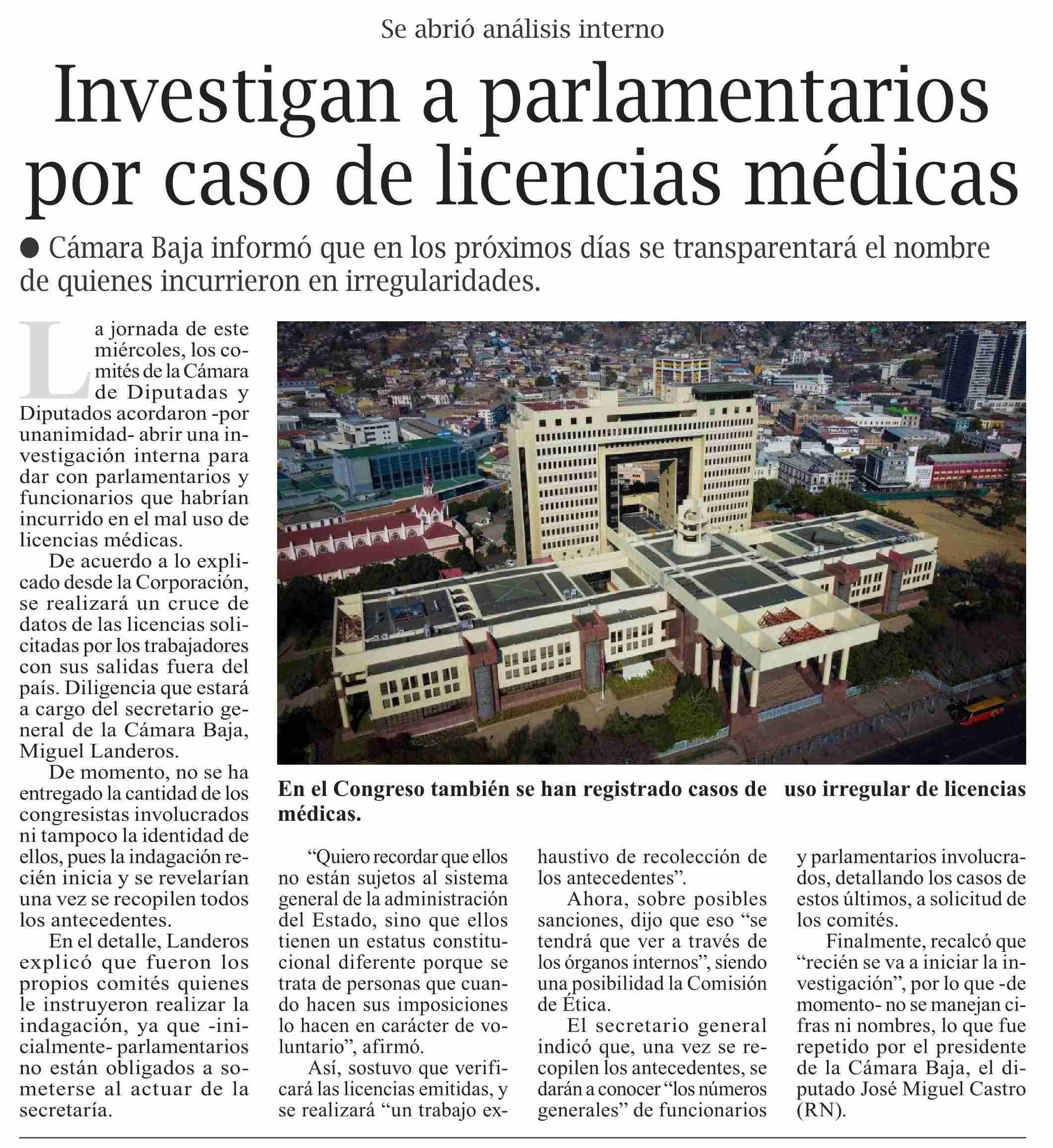 Investigan a parlamentarios por caso de licencias médicas