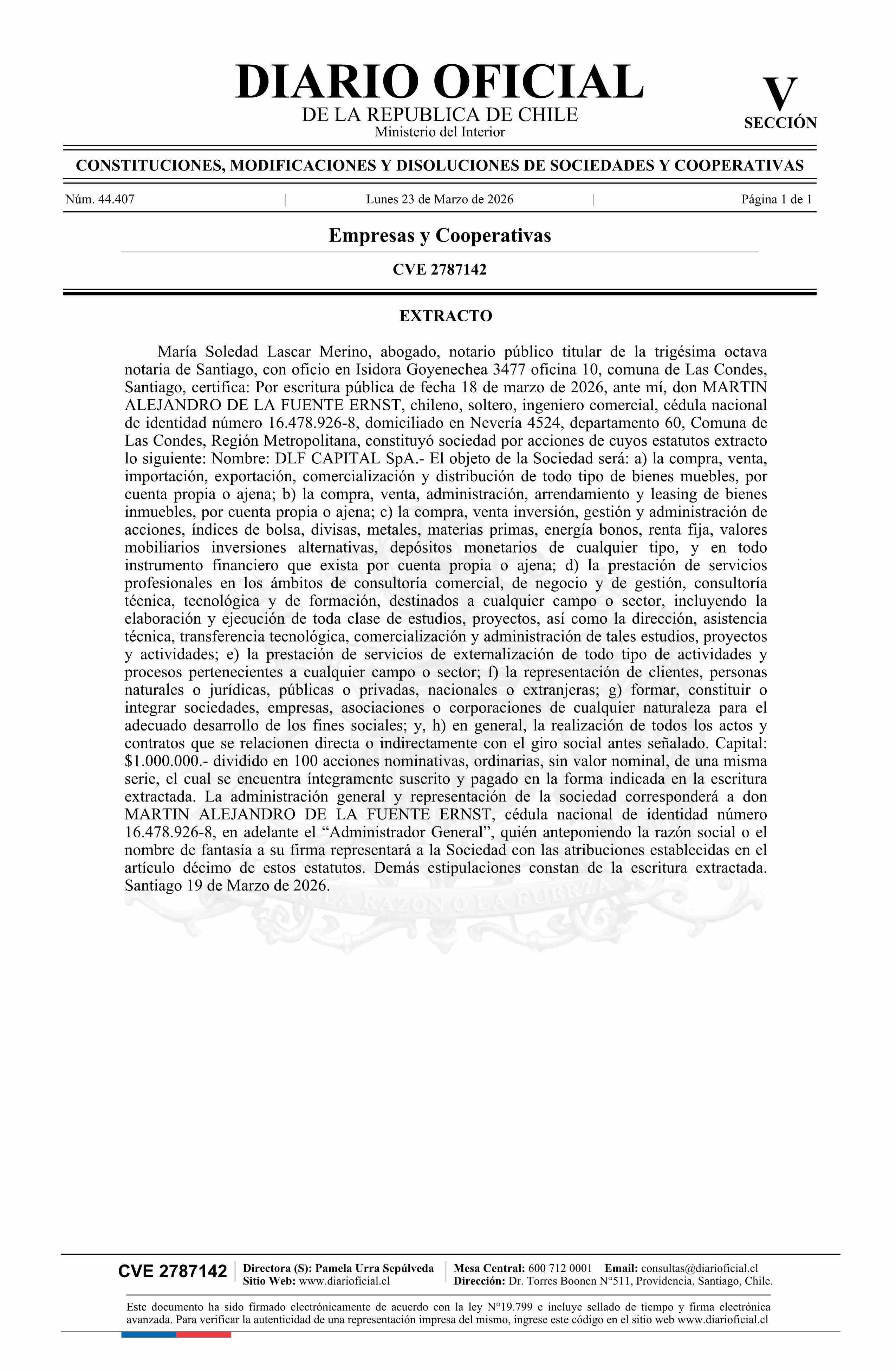 Diario Oficial Edición Electrónica (Diario Oficial de Chile - 5 Empresas Y Cooper)