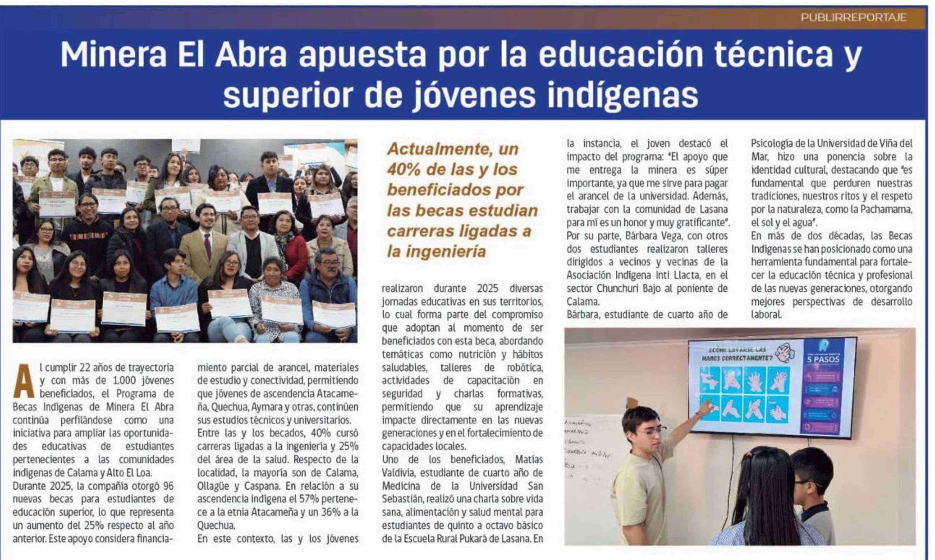 Minera El Abra apuesta por la educación técnica y superior de jóvenes indígenas