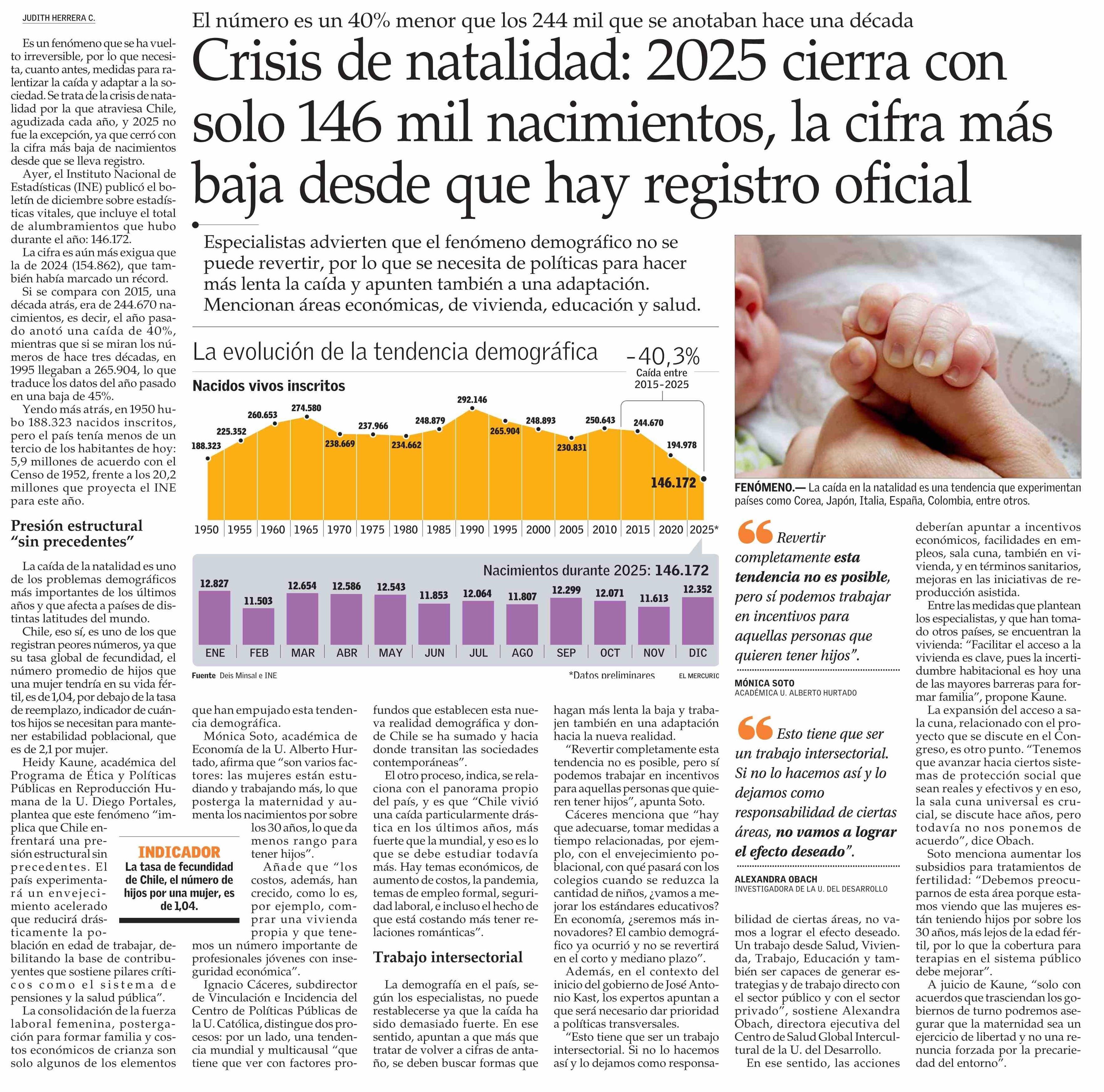Crisis de natalidad: 2025 cierra con solo 146 mil nacimientos, la cifra más baja desde que hay registro oficial