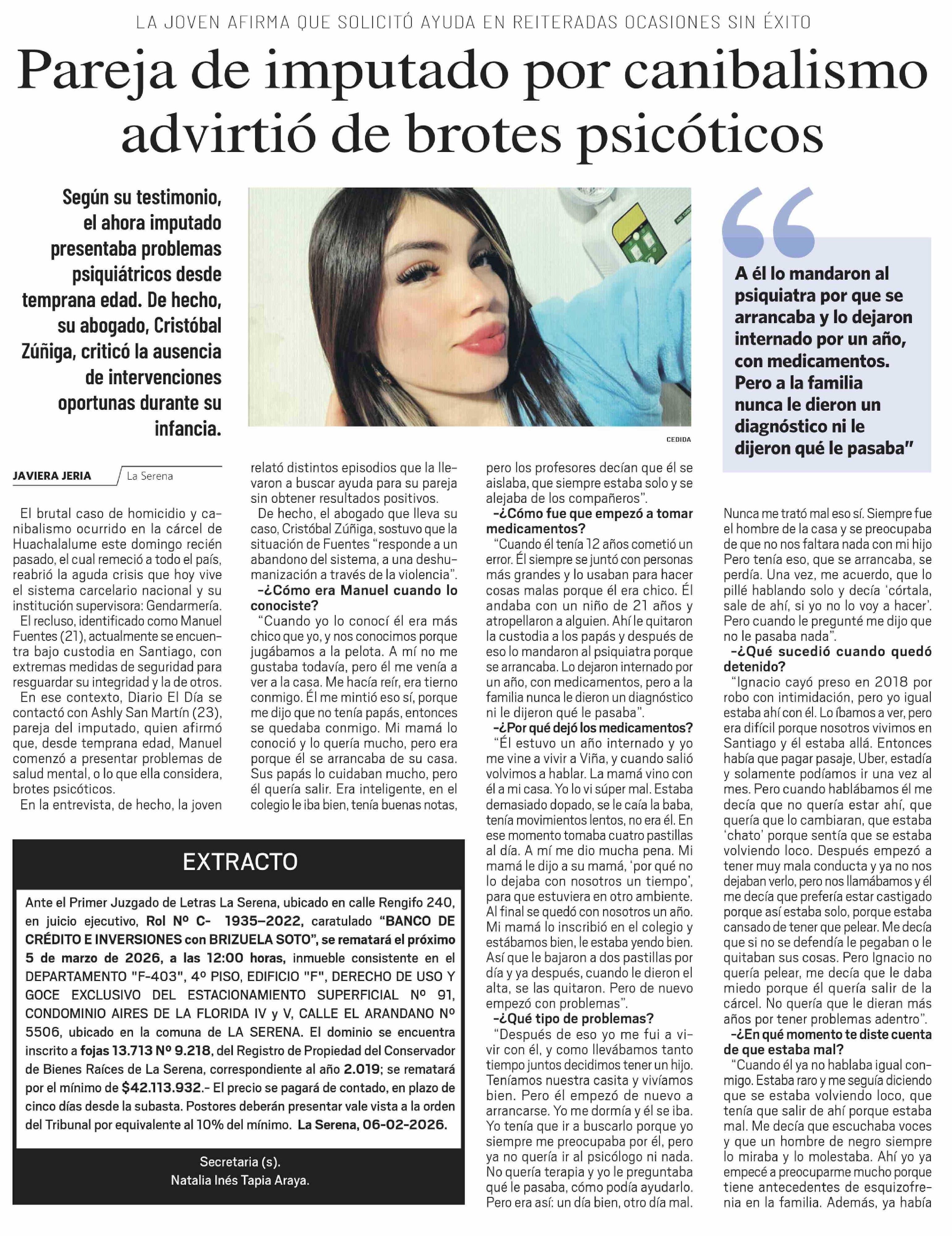 Título: Pareja de imputado por canibalismo advirtió de brotes psicóticos