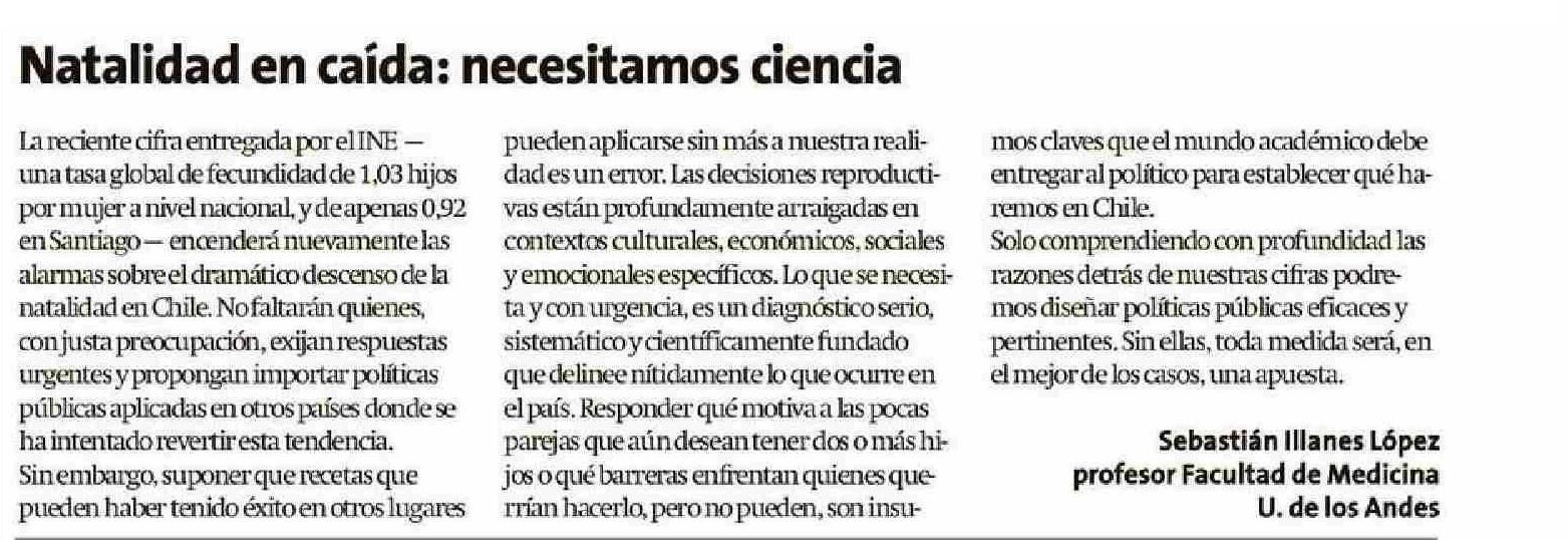 CARTAS: Natalidad en caída: necesitamos ciencia