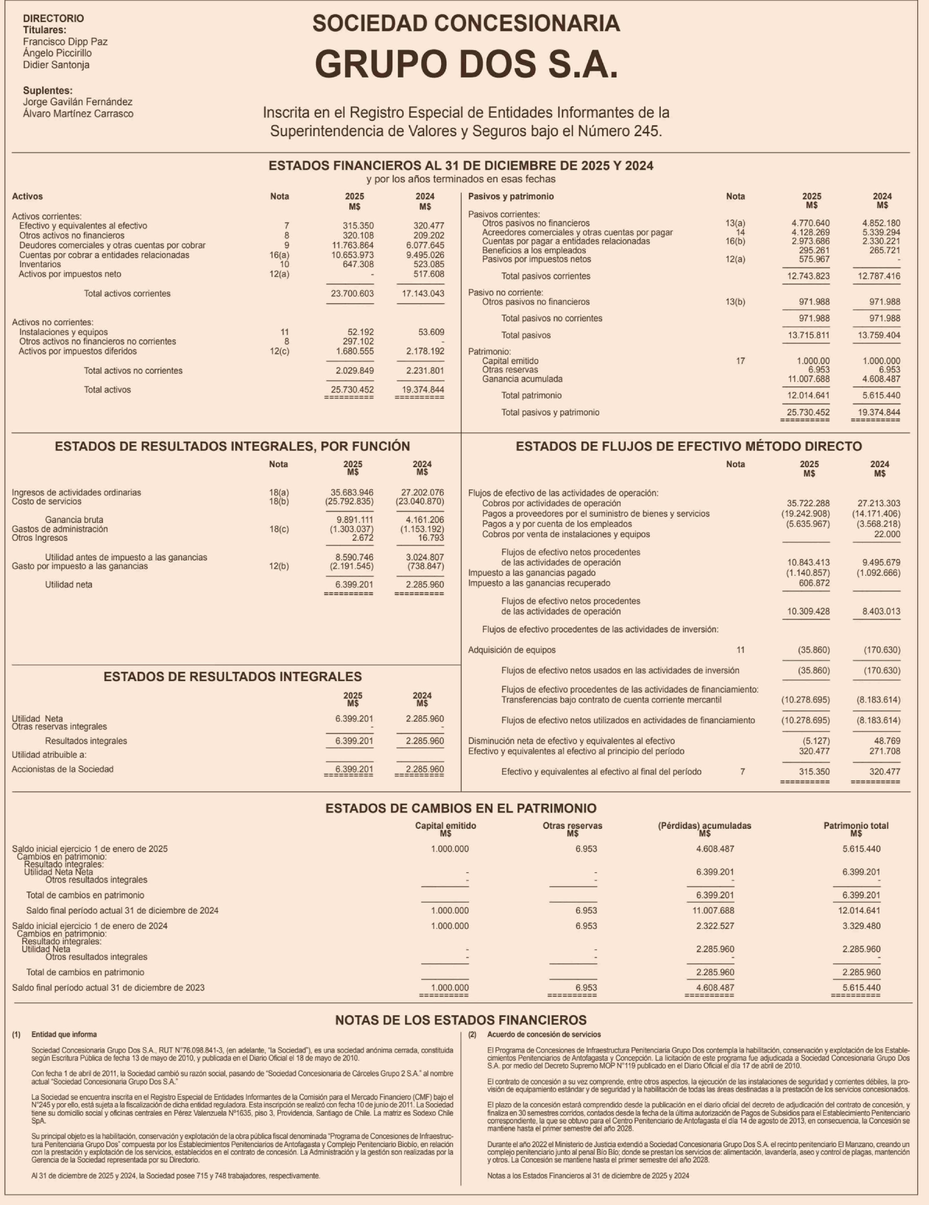 AVISOS SOCIEDAD CONCESIONARIA GRUPO DOS S.A.