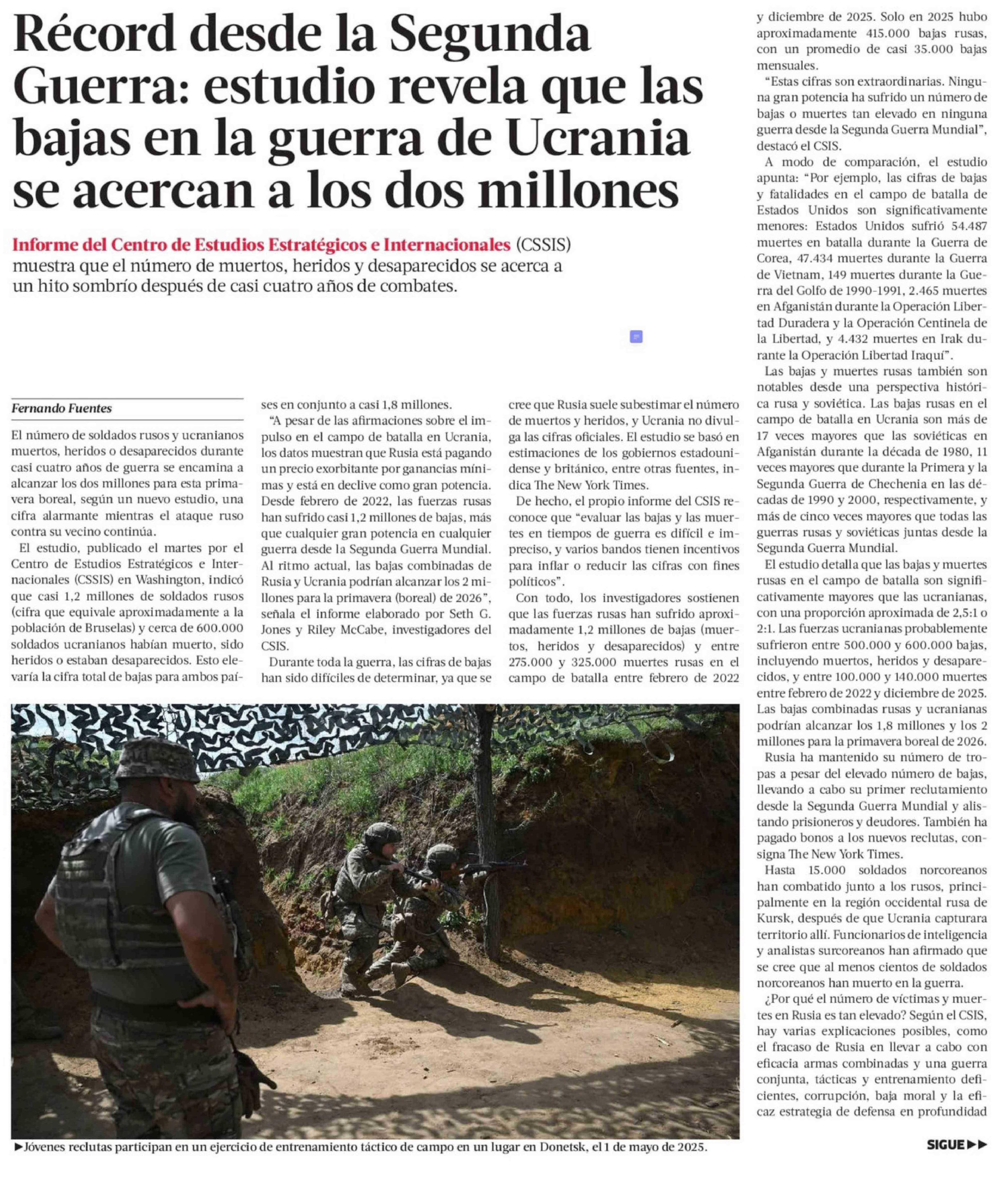 Título: Récord desde la Segunda Guerra: estudio revela que las bajas en la guerra de Ucrania se acercan a los dos millones