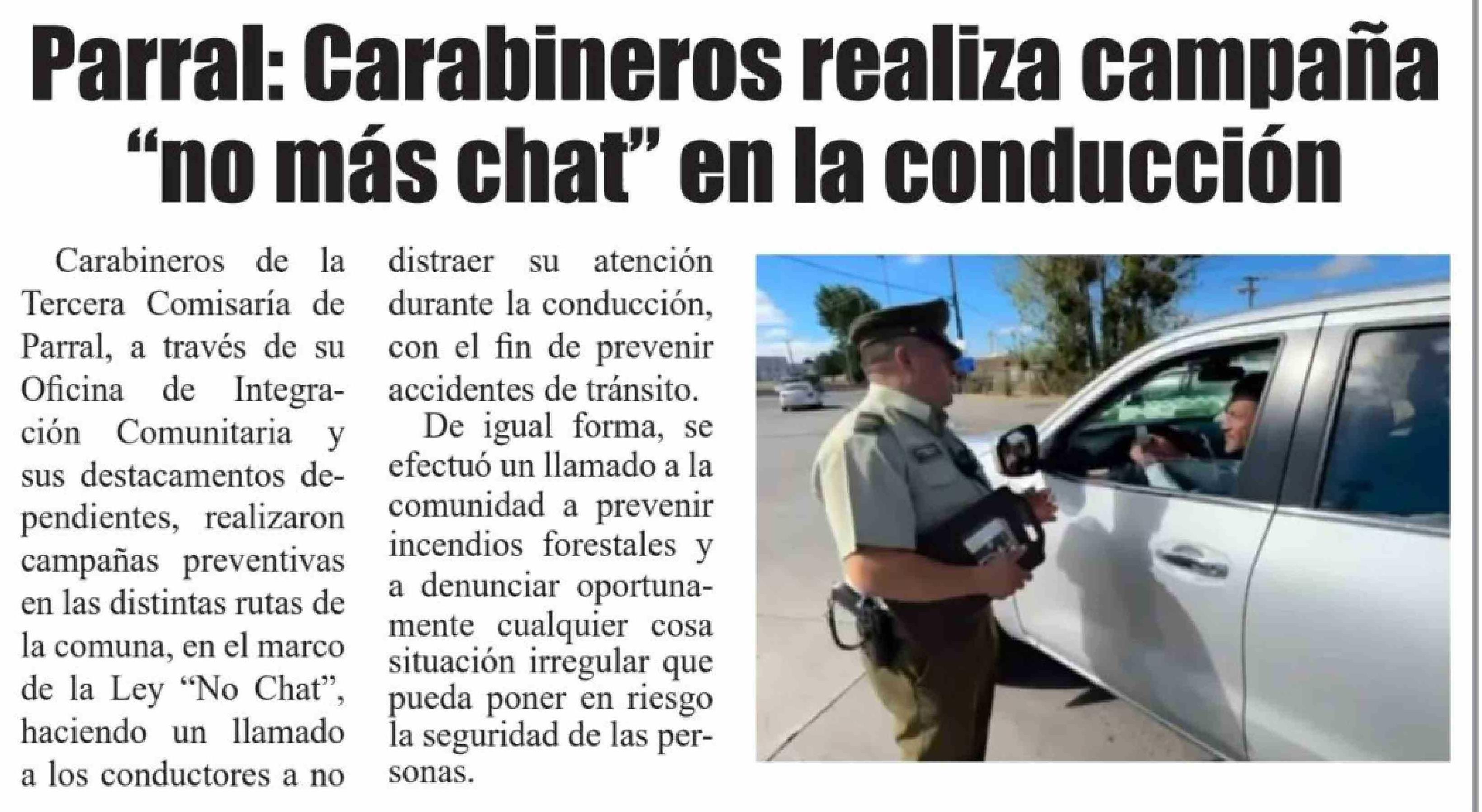 Parral: Carabineros realiza campaña "no más chat" en la conducción