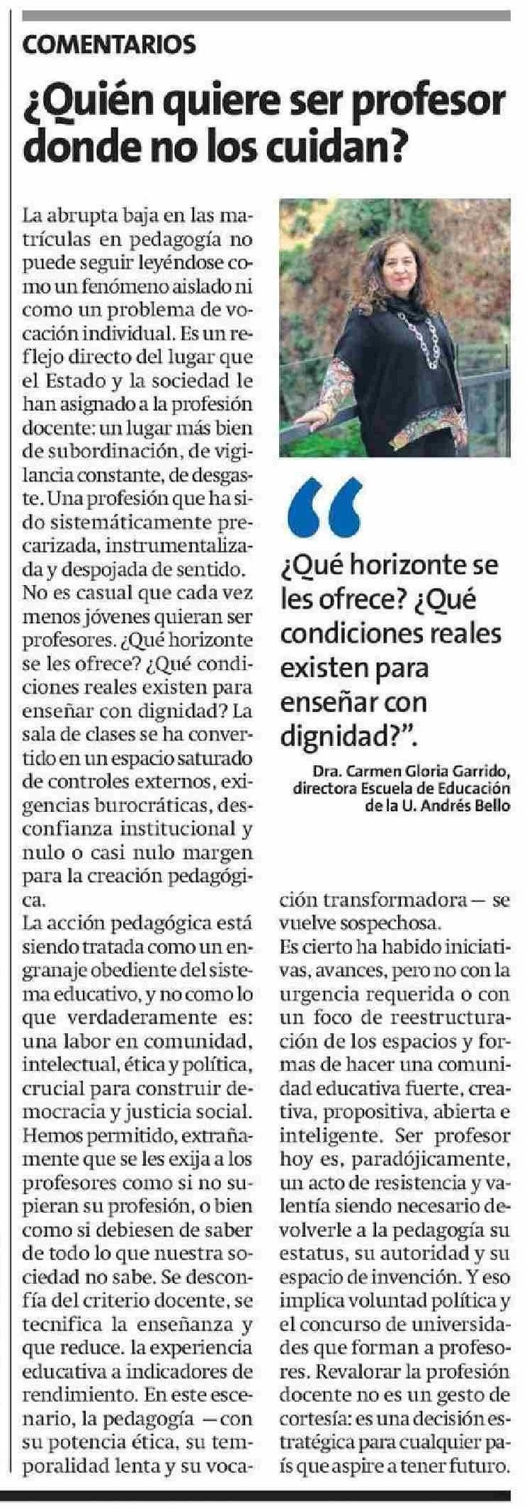 Columnas de Opinión: ¿Quién quiere ser profesor donde no los cuidan?
