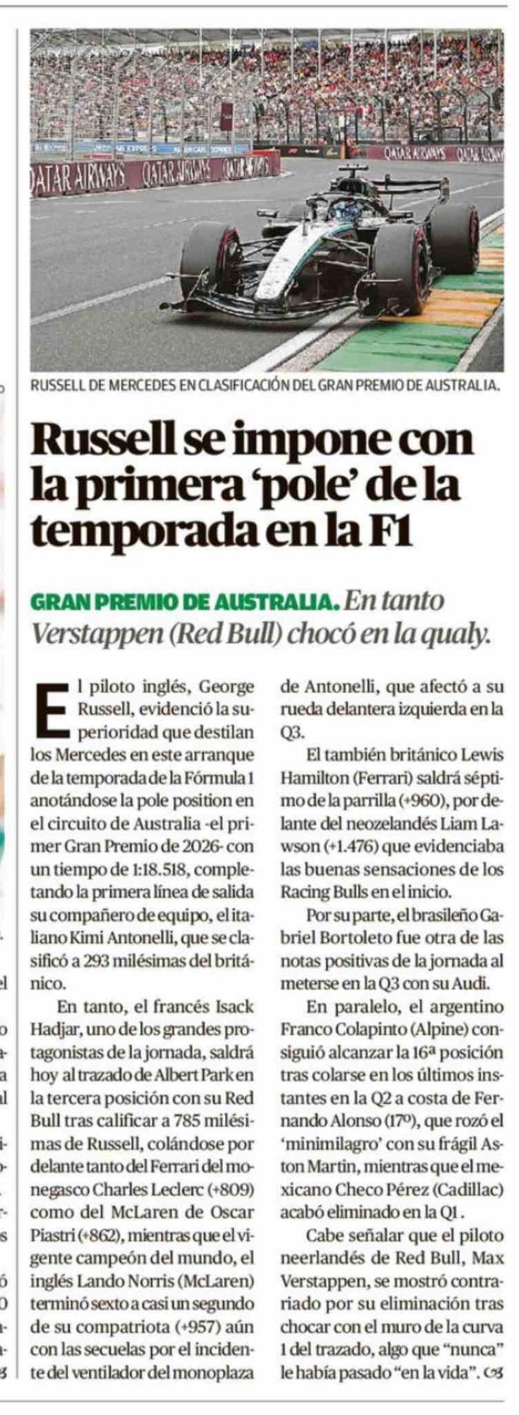 Russell se impone con la primera 'pole' de la temporada en la F1