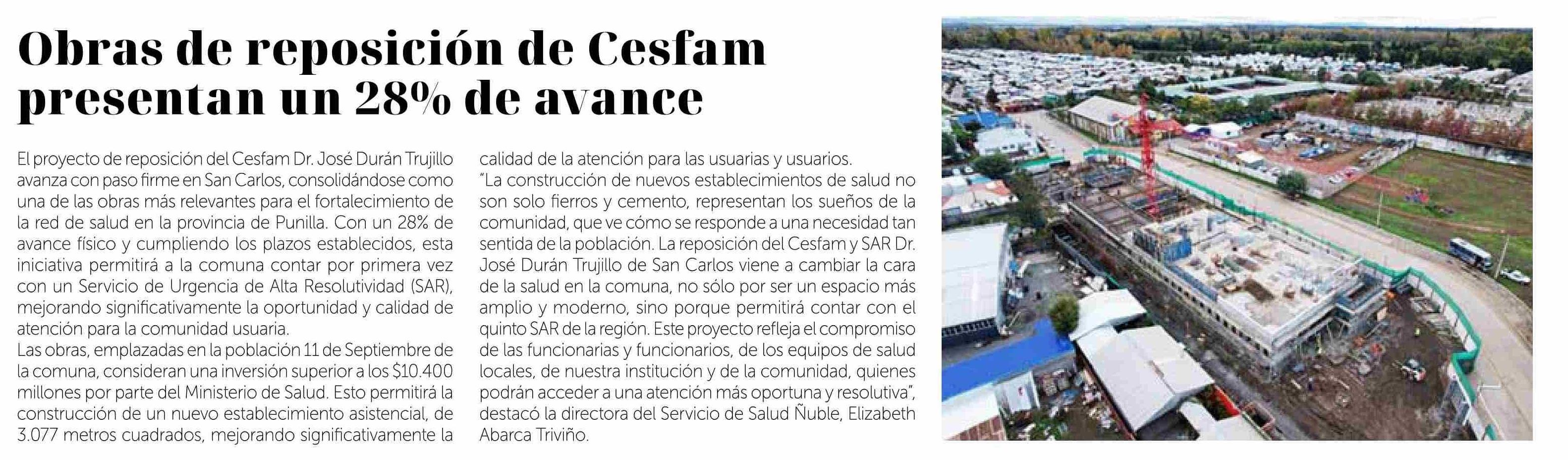Obras de reposición de Cesfam presentan un 28% de avance