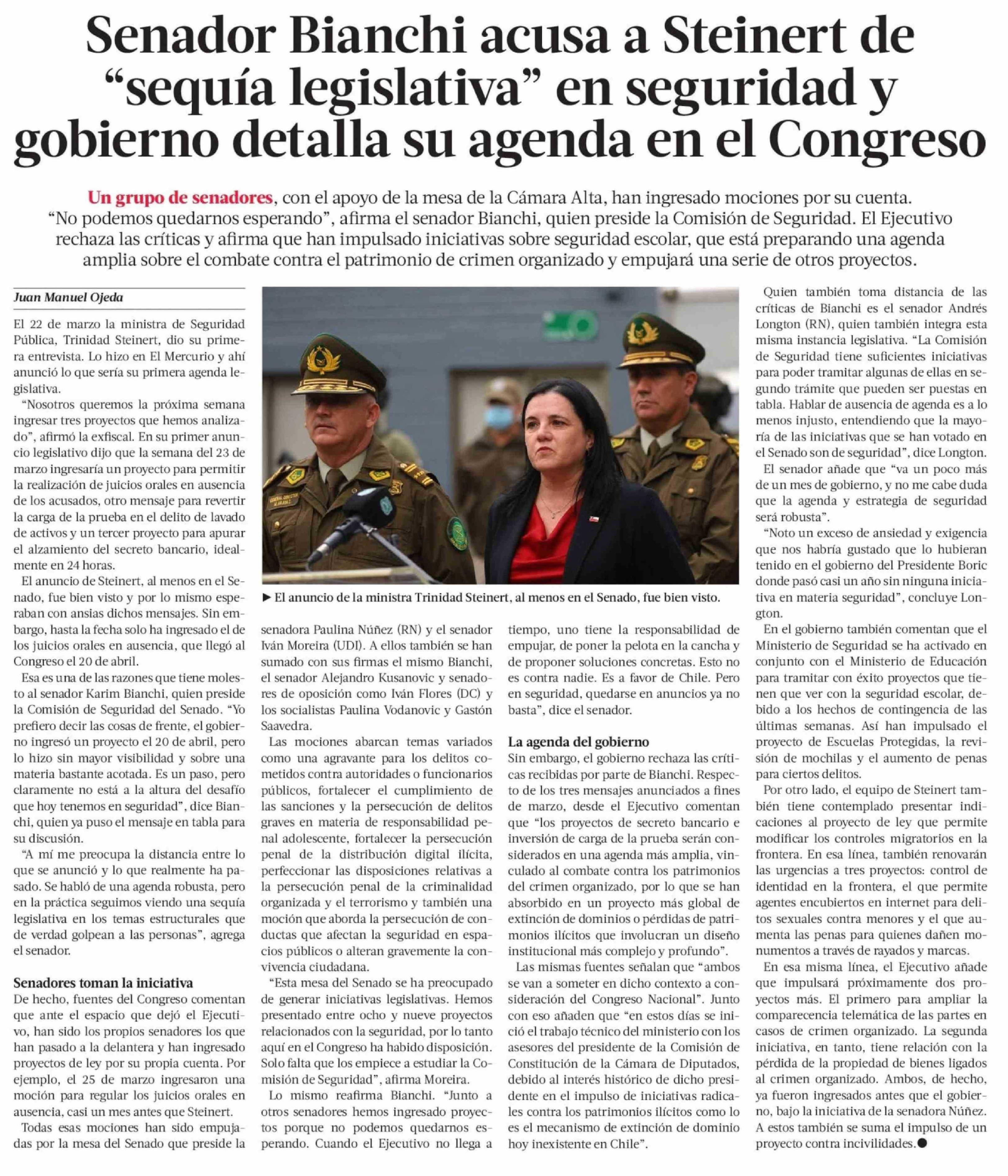 Senador Bianchi acusa a Steinert de "sequía legislativa" en seguridad y gobierno detalla su agenda en el Congreso