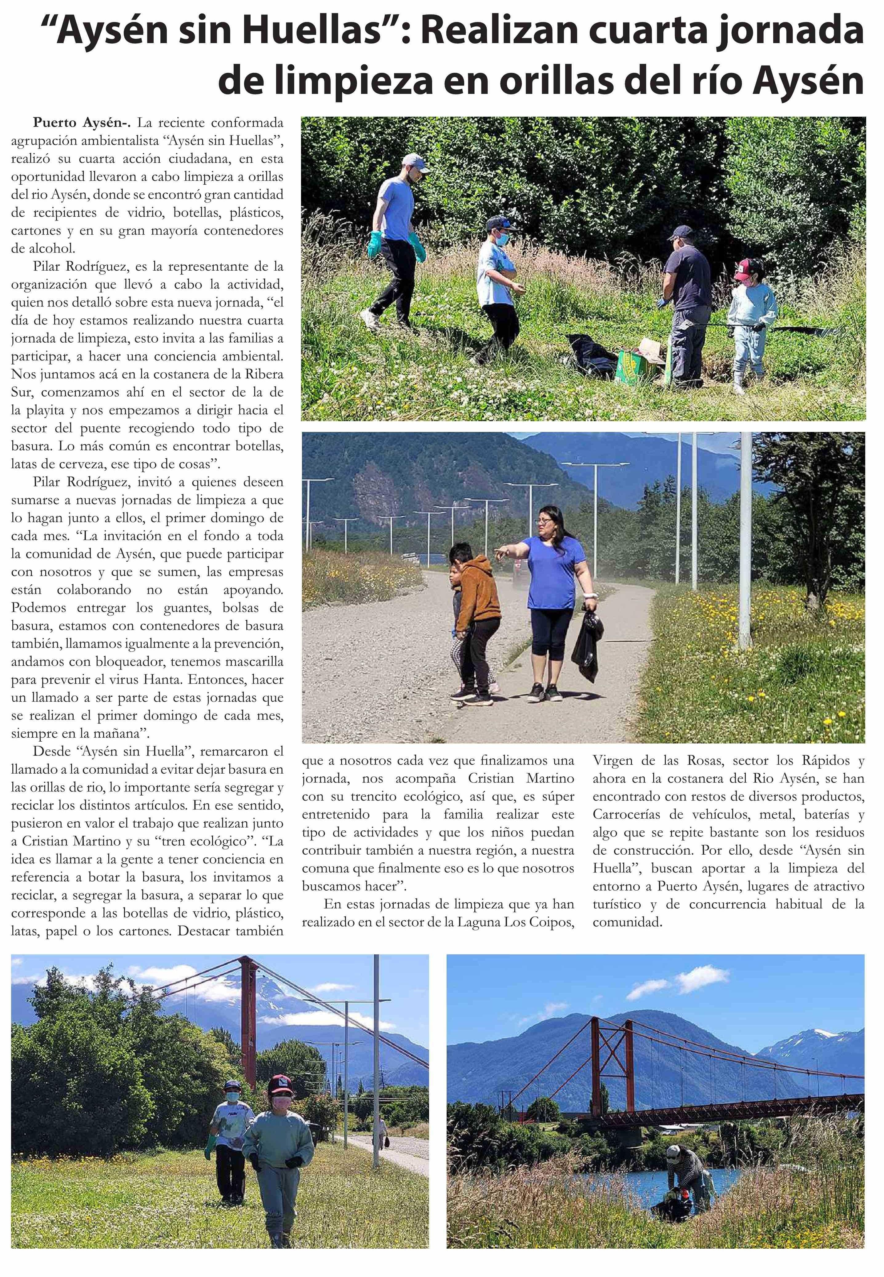 “Aysén sin Huellas”: Realizan cuarta jornada de limpieza en orillas del río Aysén