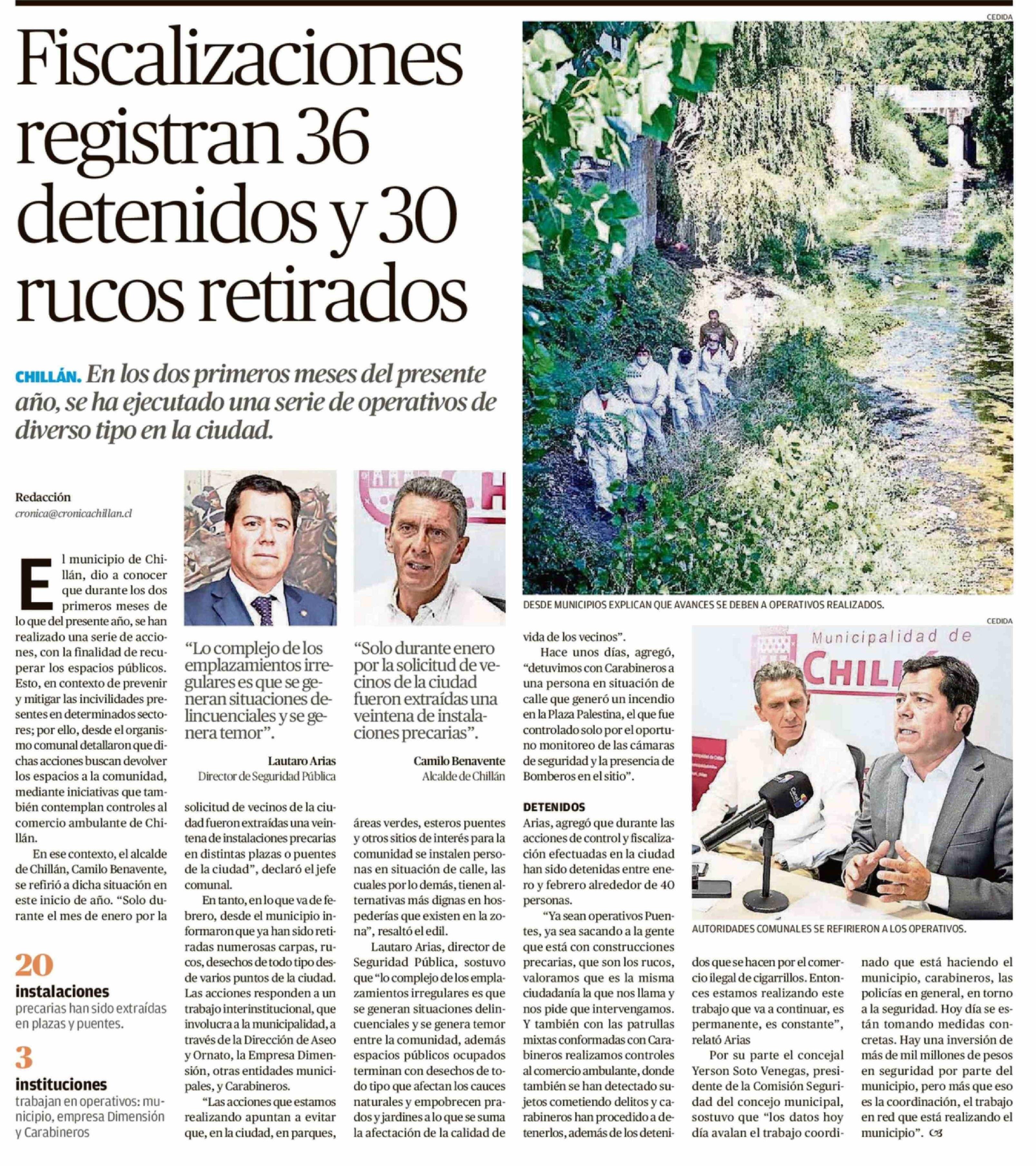 Fiscalizaciones registran 36 detenidos y 30 rucos retirados