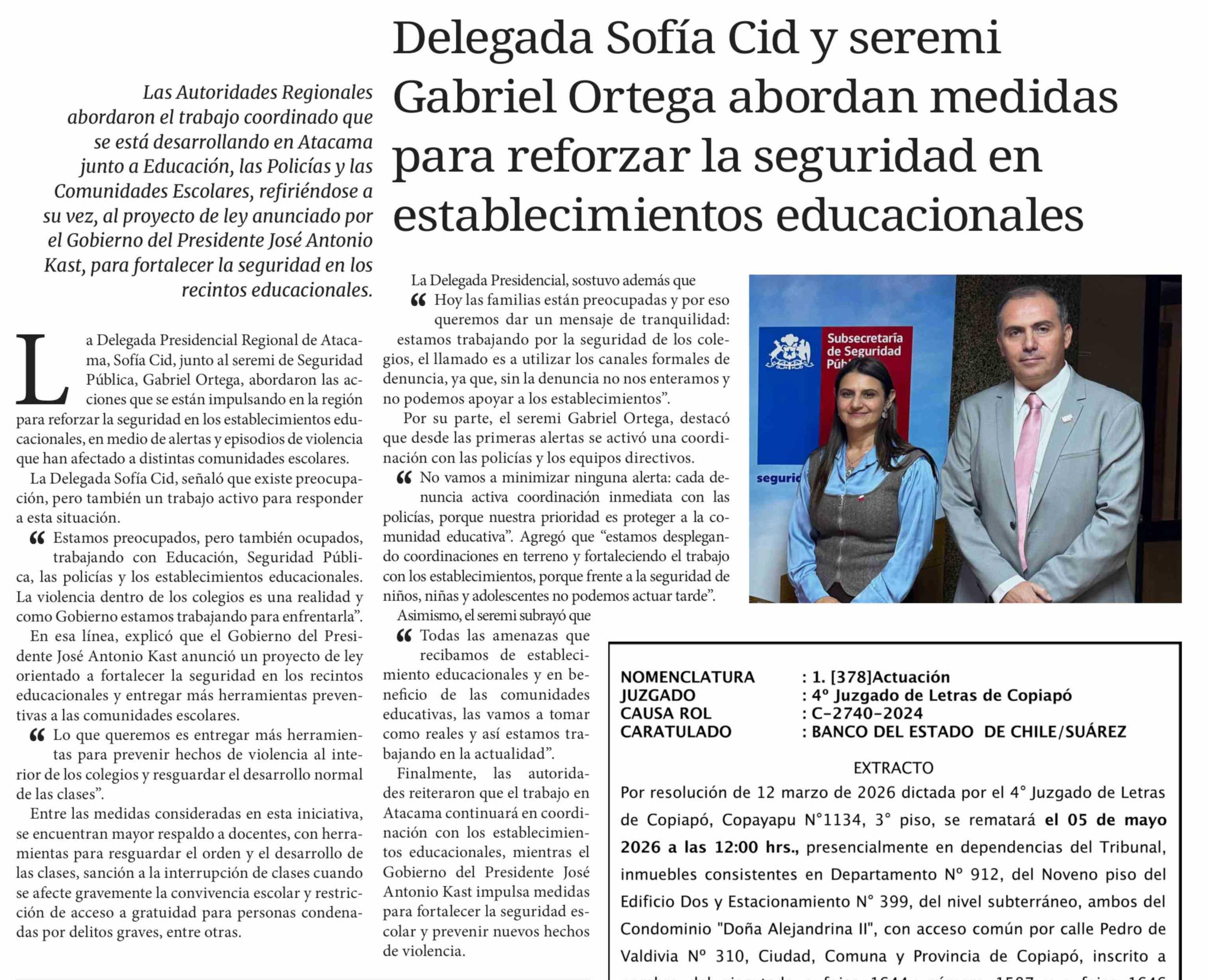 Fecha: 10-04-2026 Sector: Noticia general Región: Región de Atacama