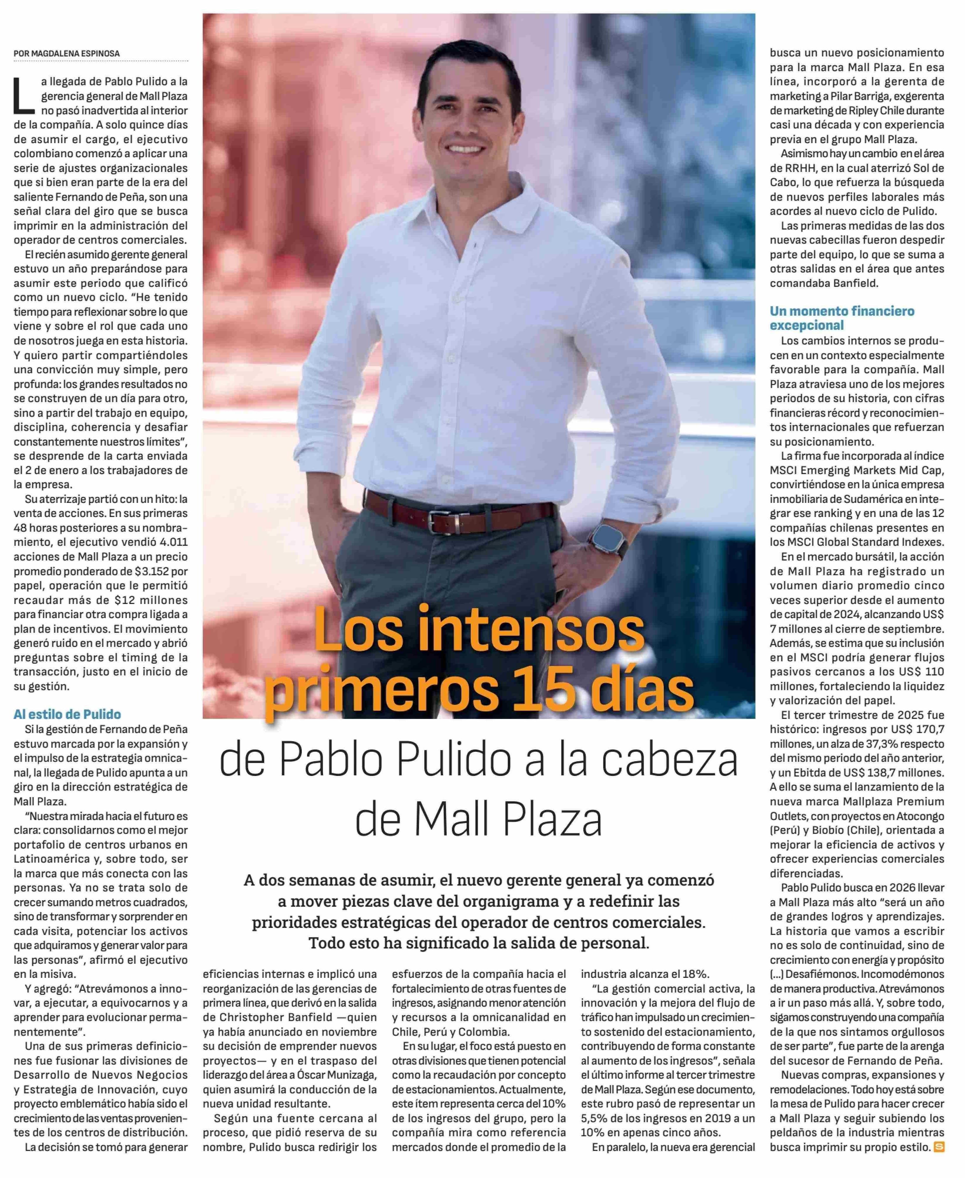 Los intensos primeros 15 días De Pablo Pulido a la cabeza de Mall Plaza