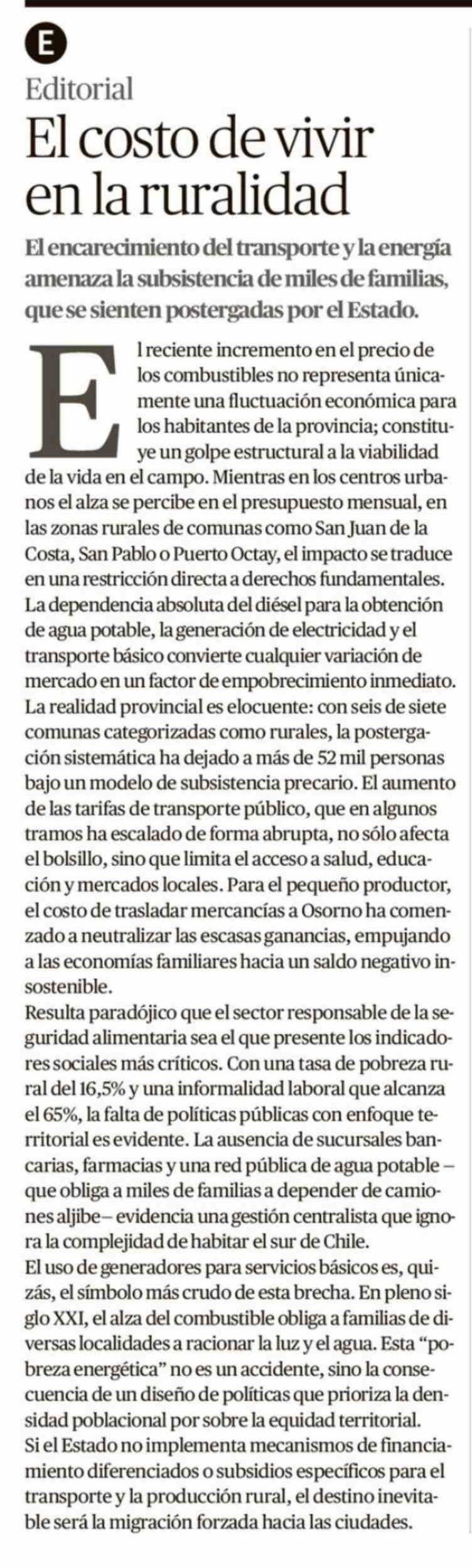 Editorial: El costo de vivir en la ruralidad