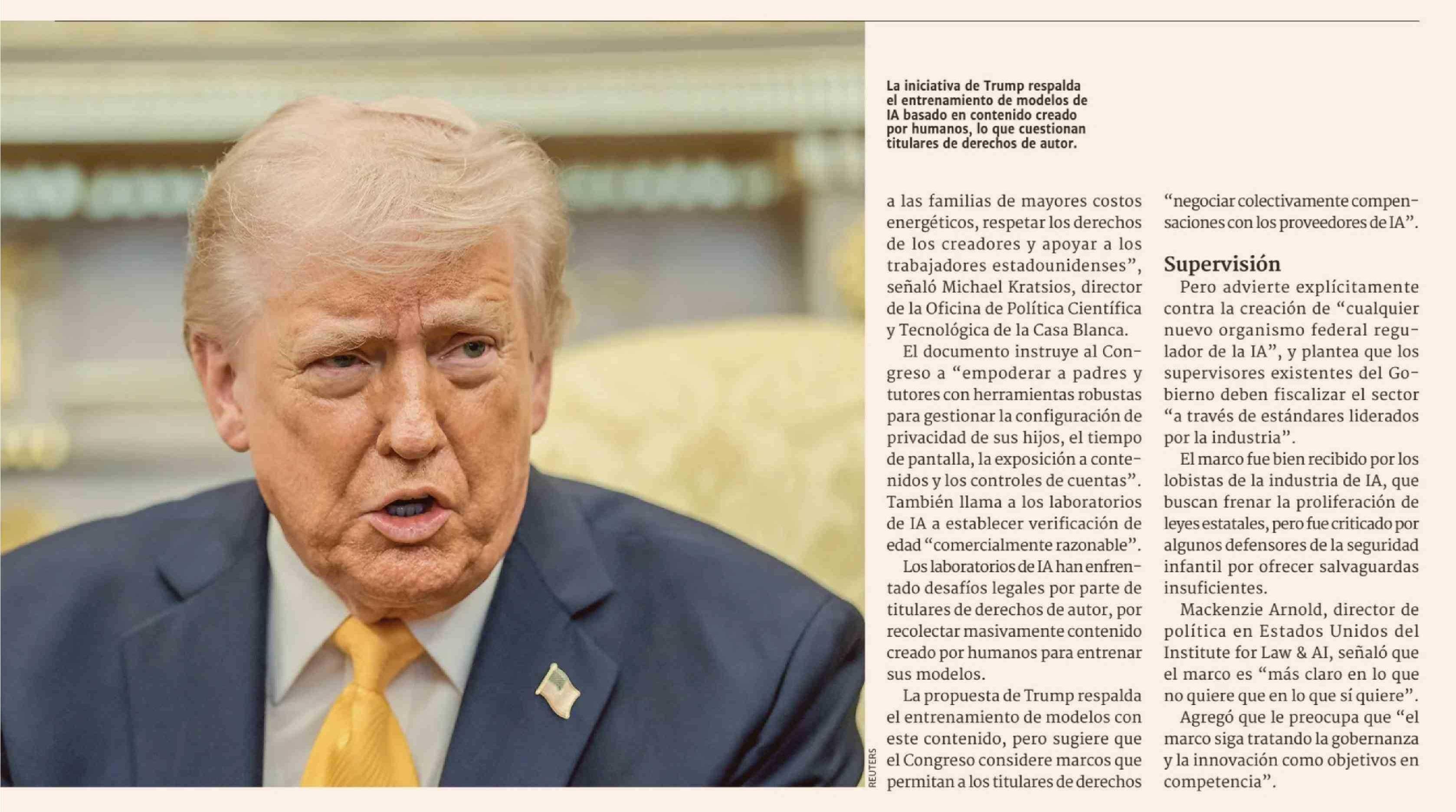 Título: Trump insta a una regulación acotada de la IA en medio del rechazo del movimiento Maga