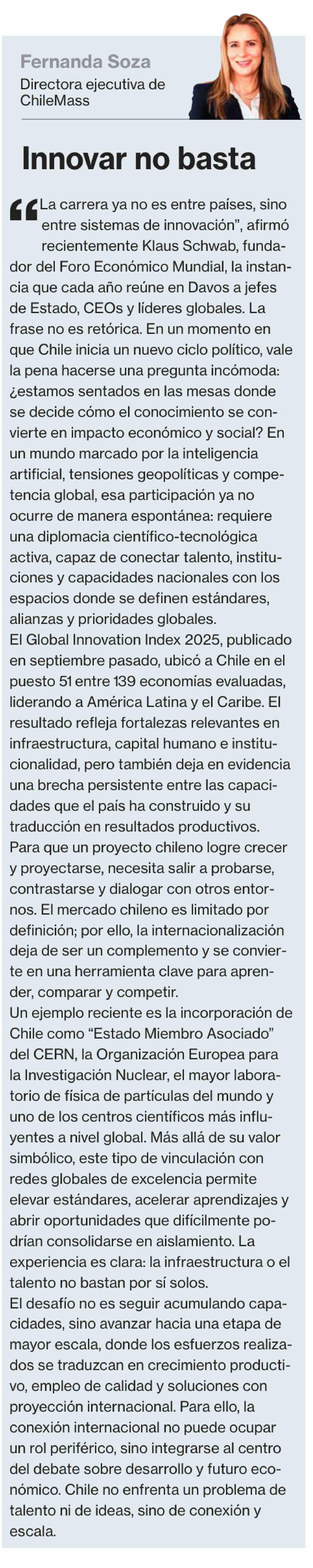 Columnas de Opinión: Innovar no basta