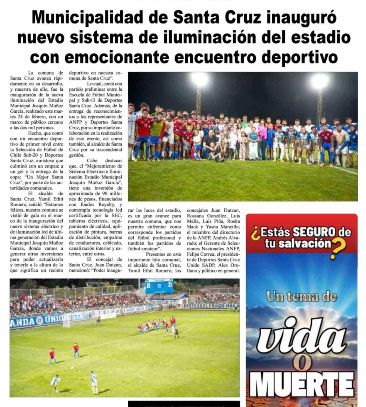 Municipalidad de Santa Cruz inauguró nuevo sistema de iluminación del estadio con emocionante encuentro deportivo