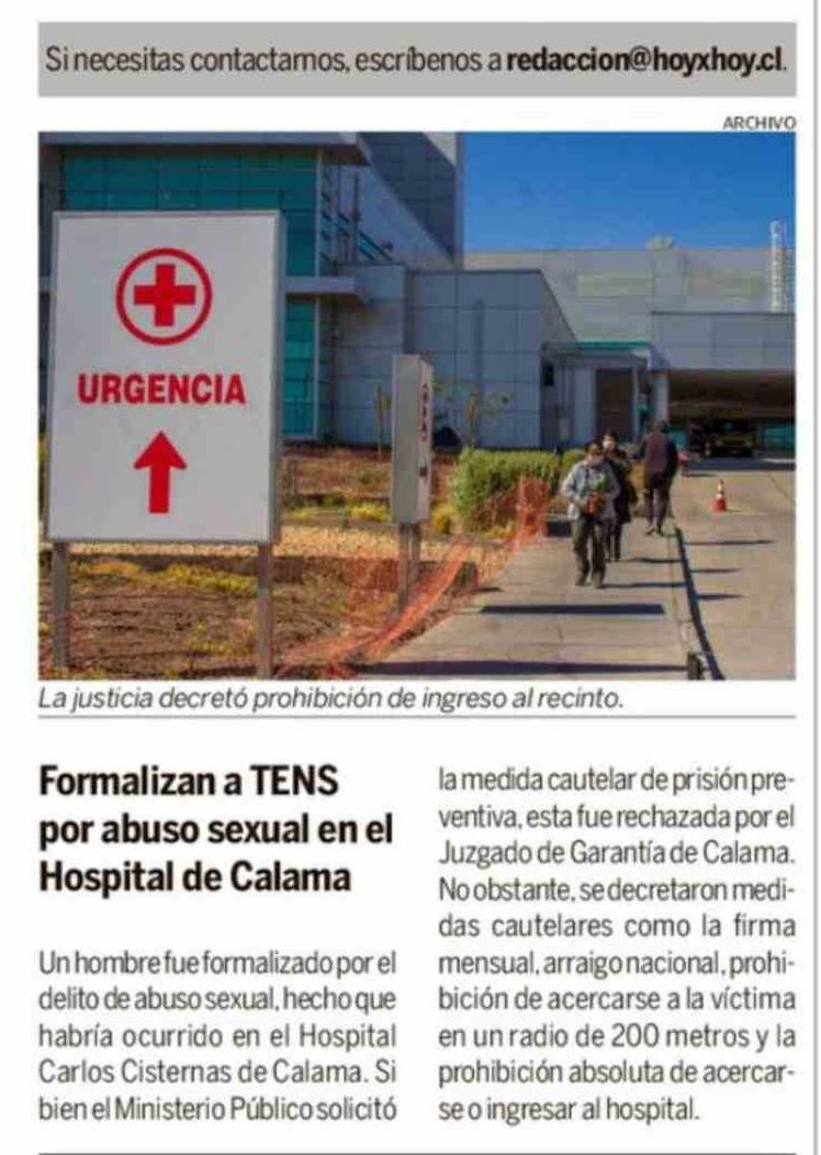 Formalizan a TENS por abuso sexual en el Hospital de Calama
