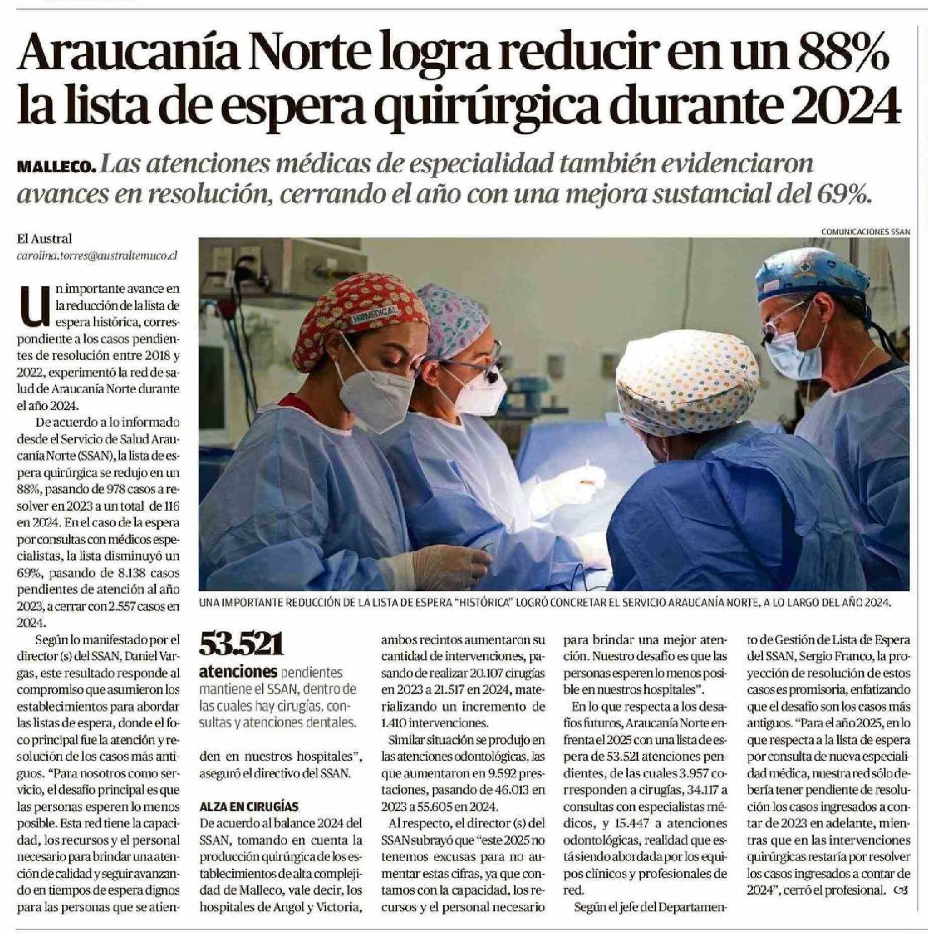Araucanía Norte logra reducir en un 88% la lista de espera quirúrgica durante 2024