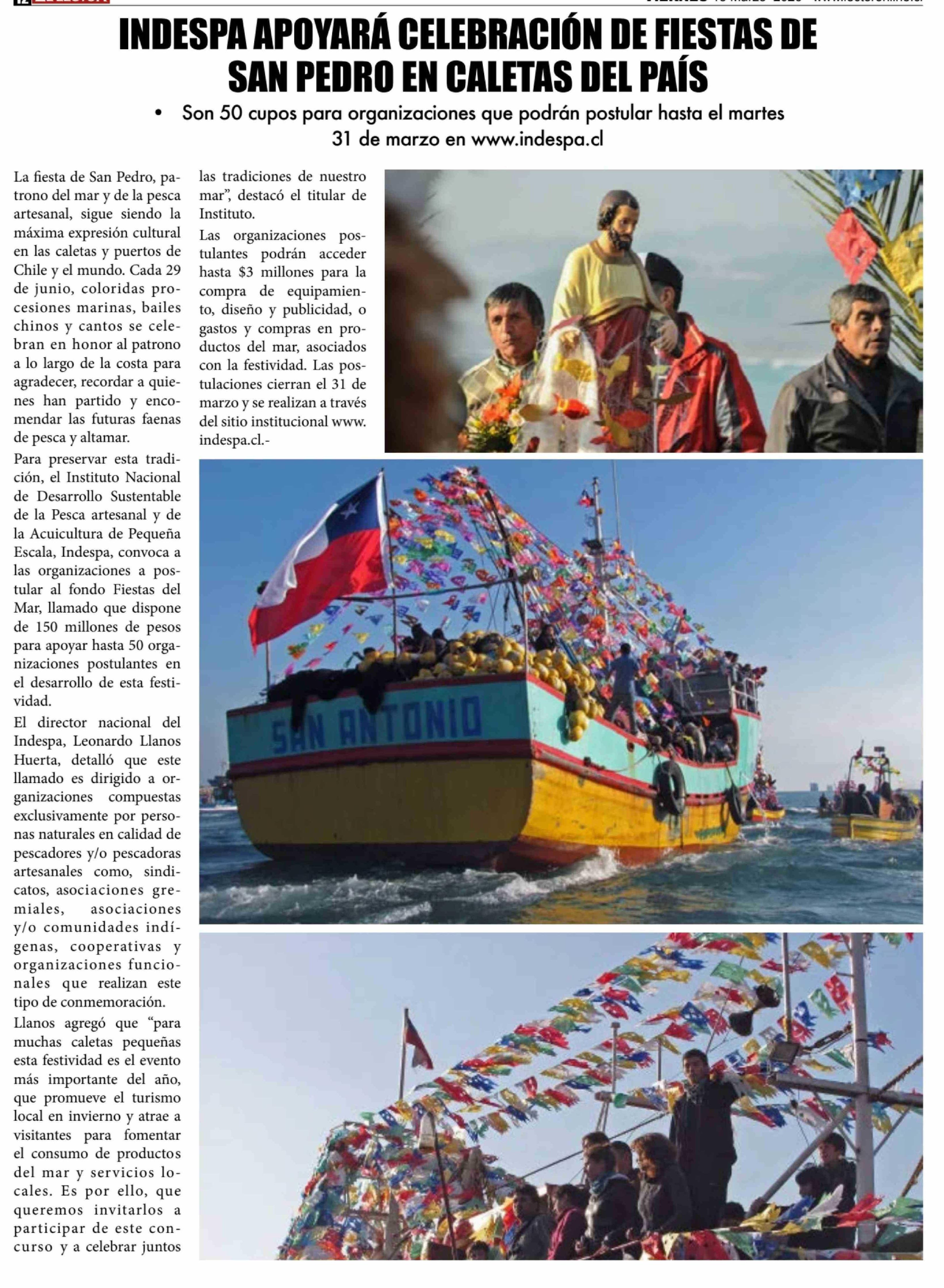 INDESPA APOYARÁ CELEBRACIÓN DE FIESTAS DE SAN PEDRO EN CALETAS DEL PAÍS