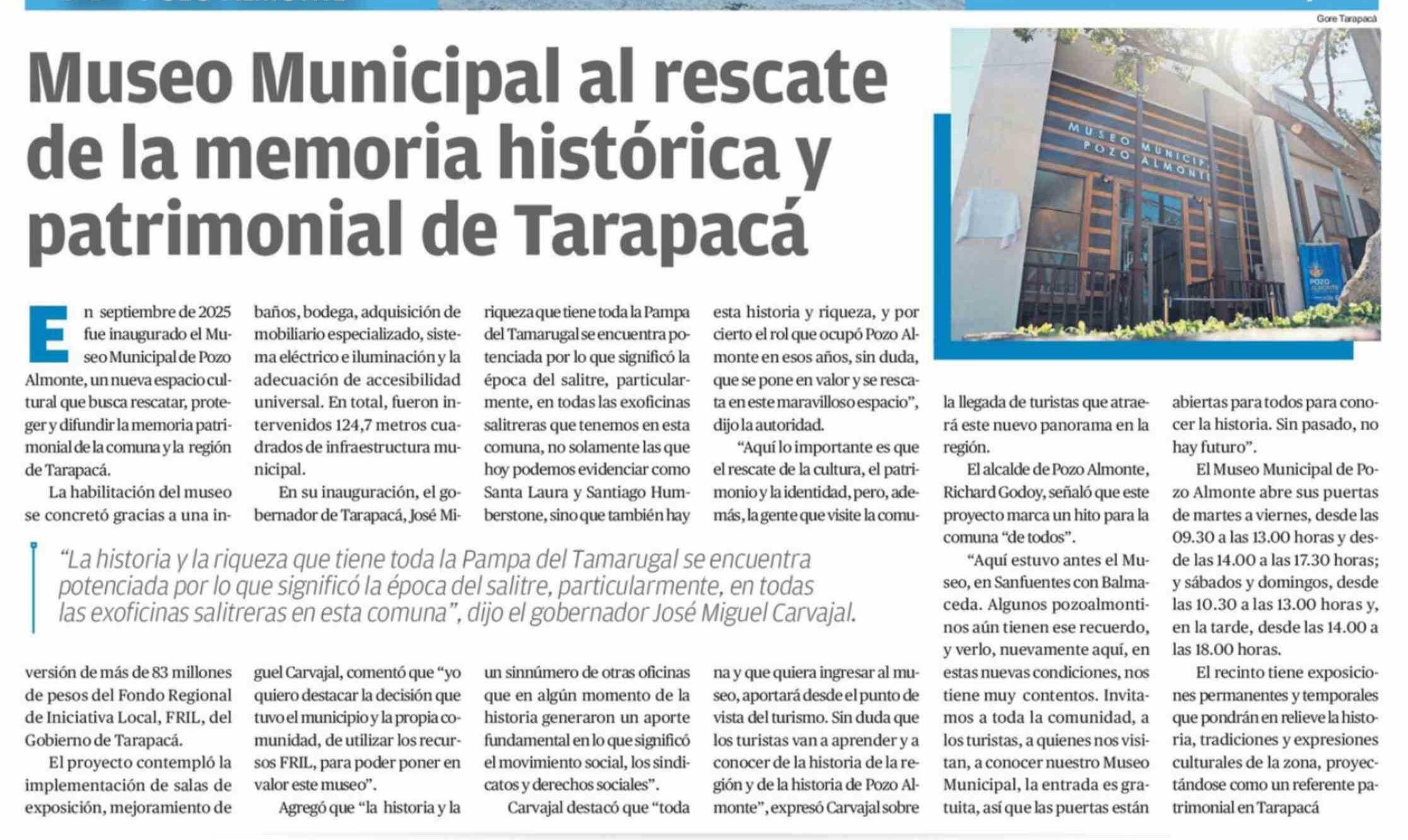Museo Municipal al rescate de la memoria histórica y patrimonial de Tarapacá