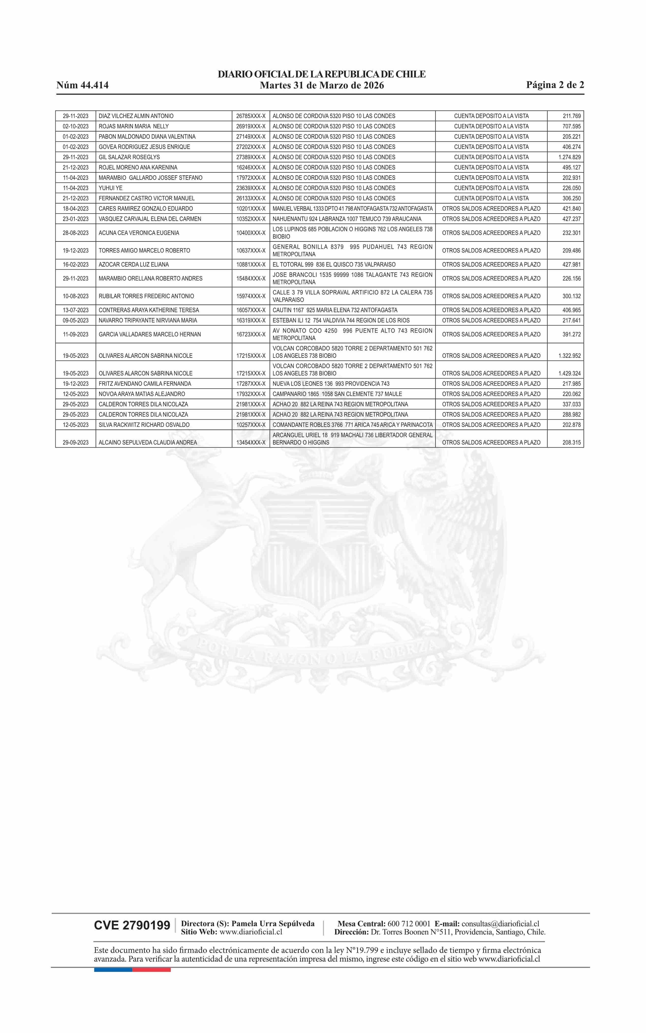 | Fuente: | Diario Oficial Edición Electrónica (Diario Oficial de Chile - 4 Avisos Destacados) | Página(s): | 10-11 |