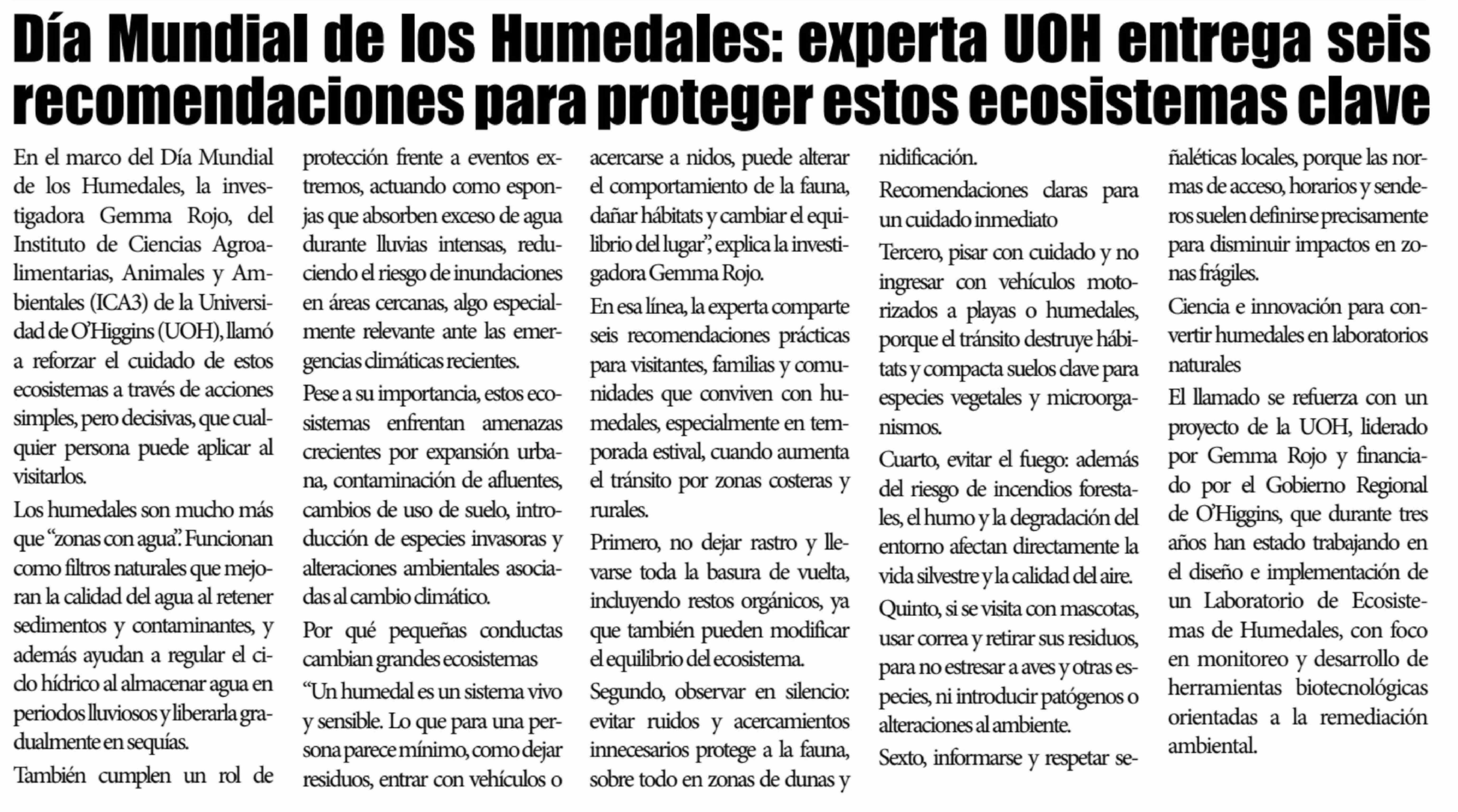 Título: Día Mundial de los Humedales: experta UOH entrega seis recomendaciones para proteger estos ecosistemas clave