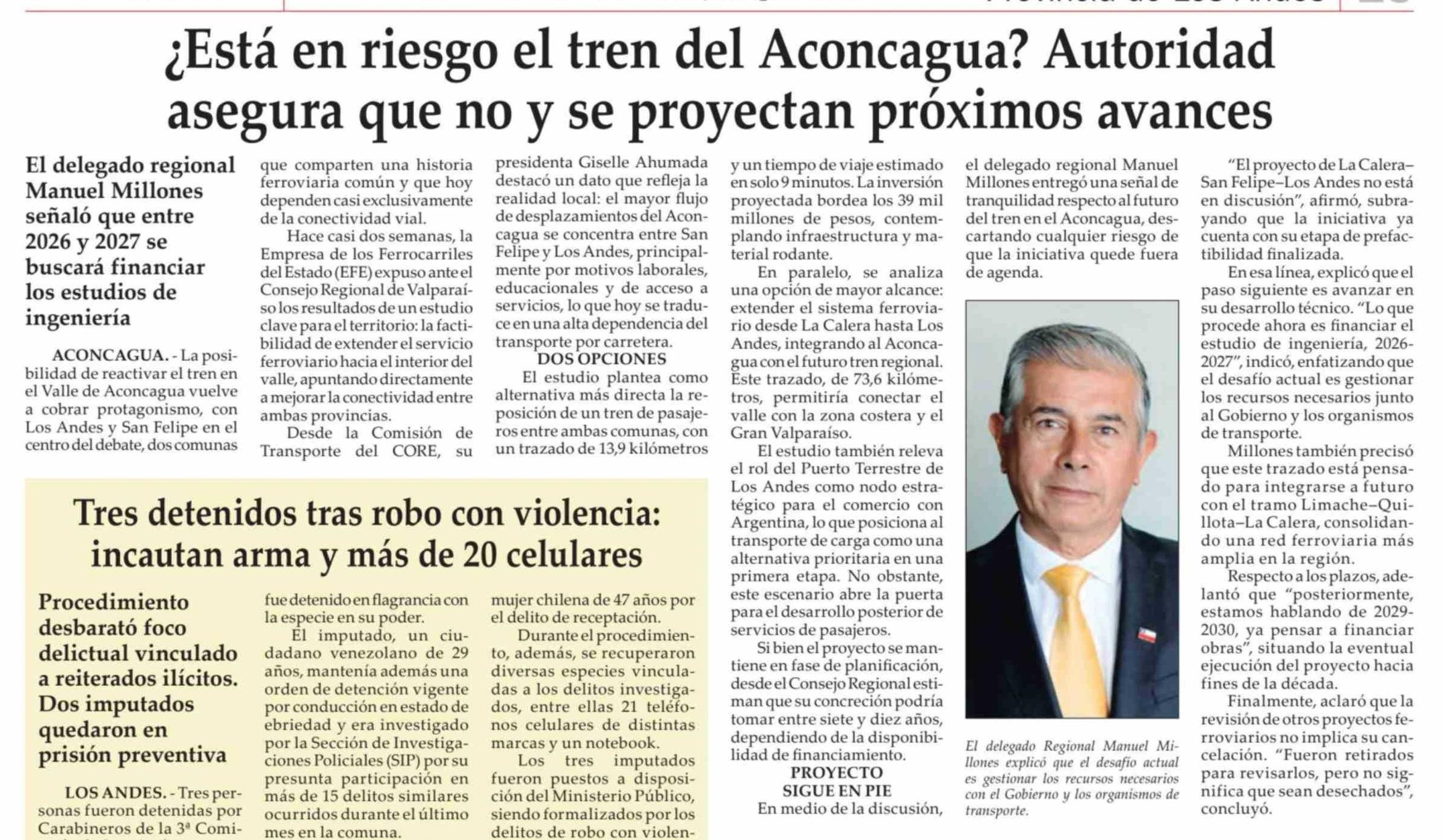¿Está en riesgo el tren del Aconcagua? Autoridad asegura que no y se proyectan próximos avances