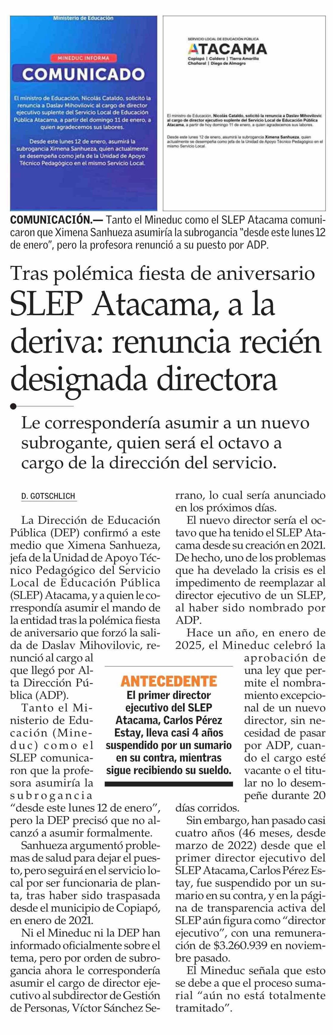 SLEP Atacama, a la deriva: renuncia recién designada directora
