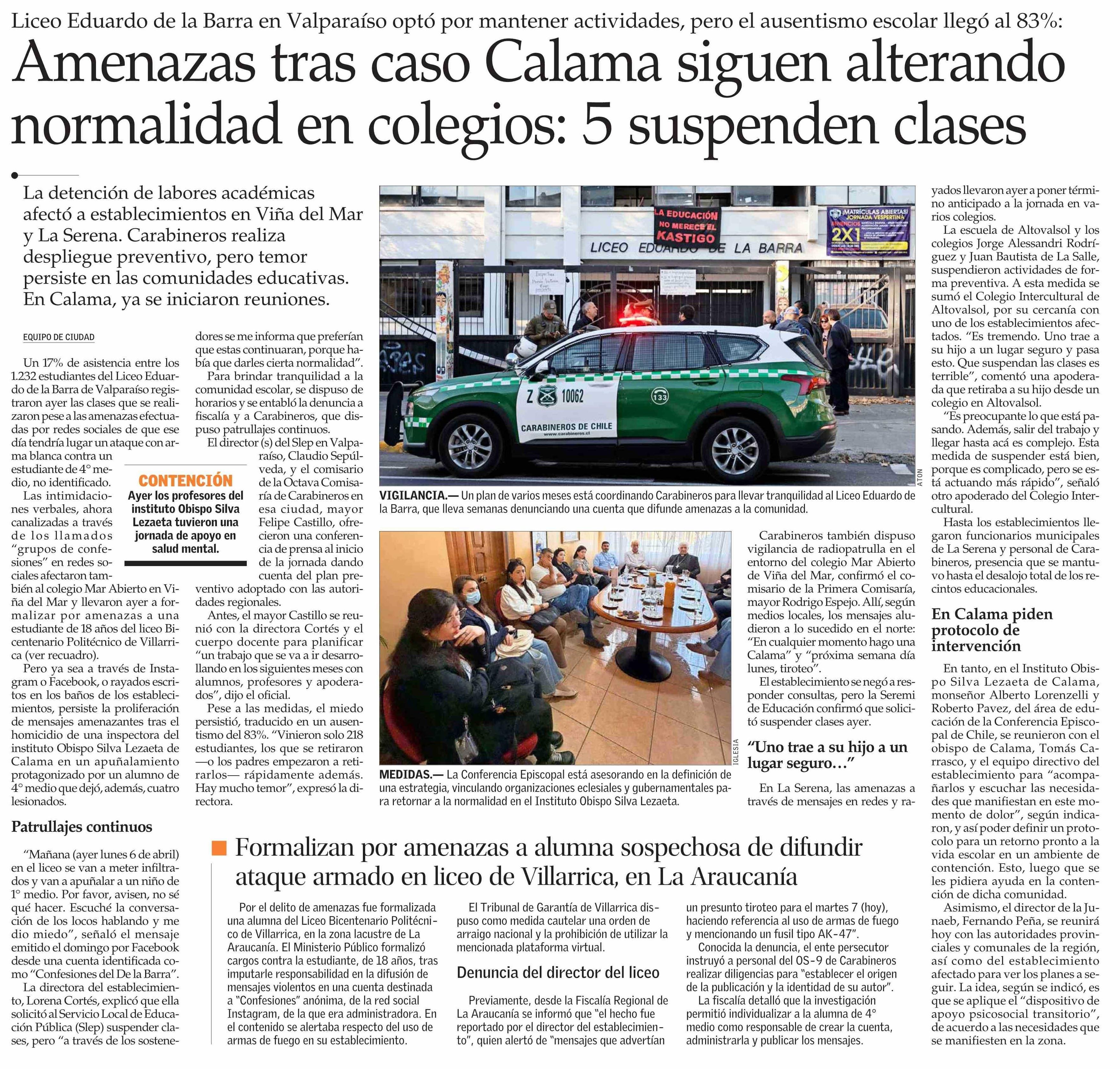 Amenazas tras caso Calama siguen alterando normalidad en colegios: 5 suspenden clases