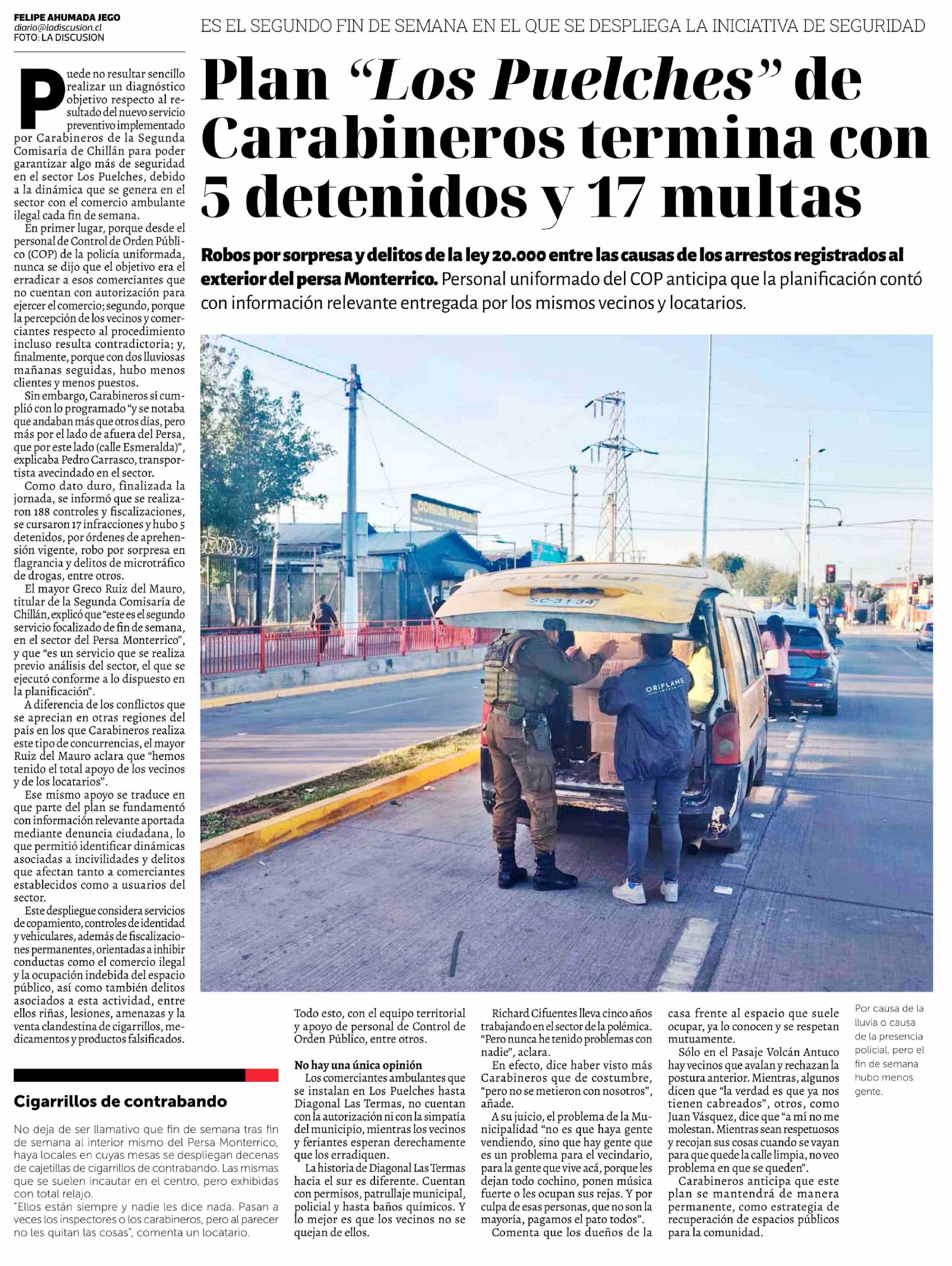Plan "Los Puelches" de Carabineros termina con 5 detenidos y 17 multas