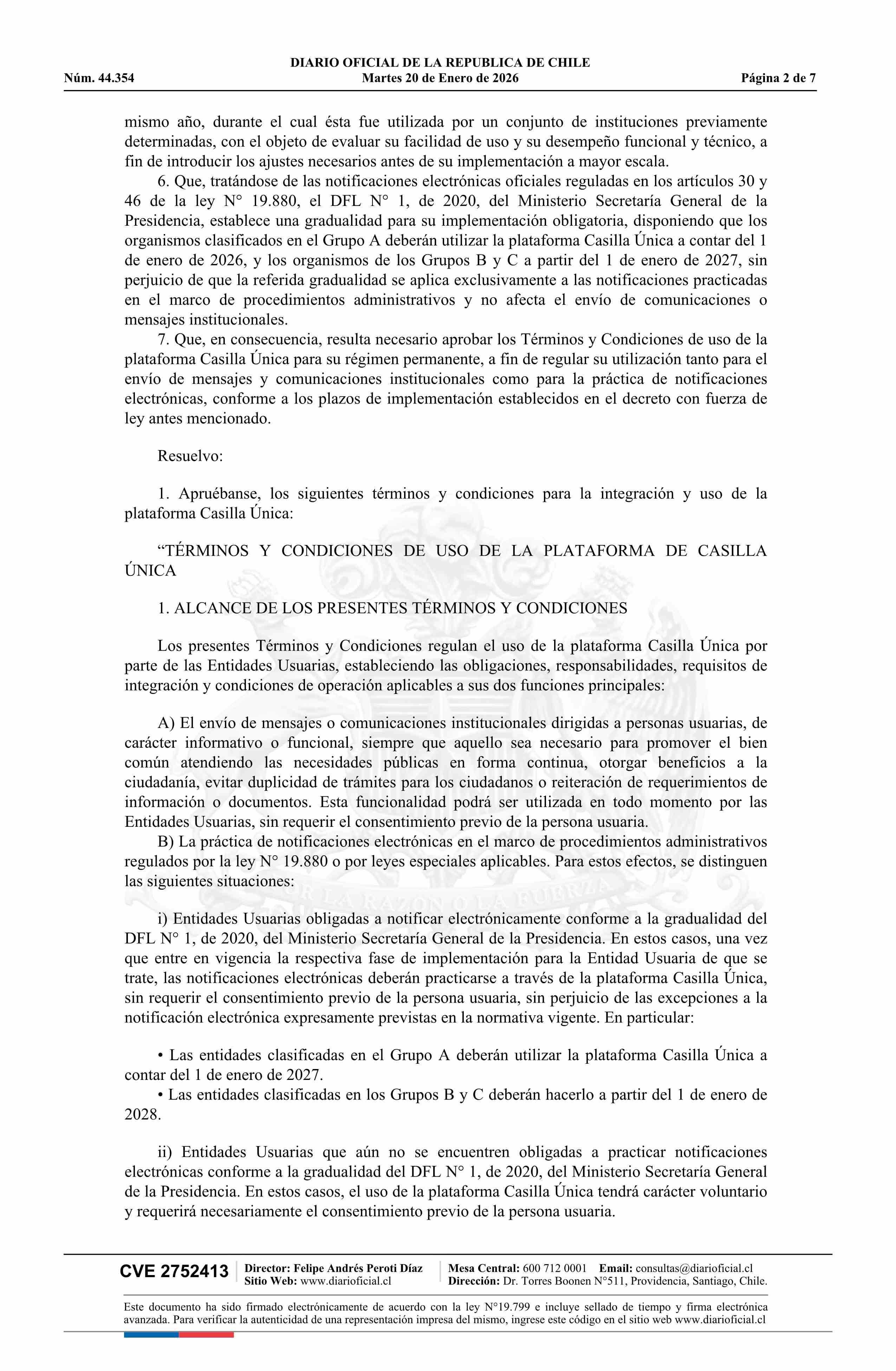 | Título: | Resolución exenta número 969, de 2025.- Aprueba términos y condiciones de uso de la plataforma Casilla Única |