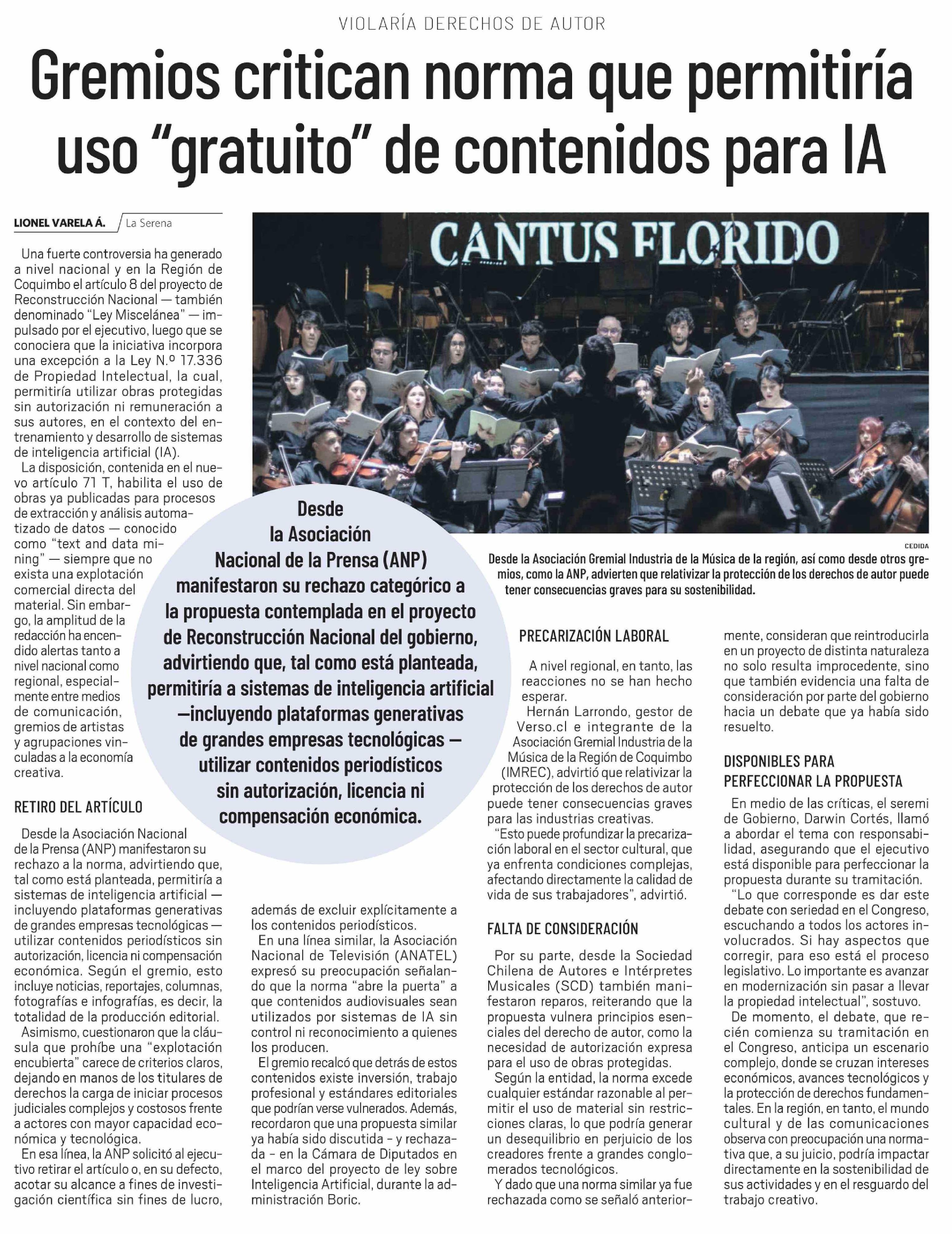 Gremios critican norma que permitiría uso "gratuito" de contenidos para IA