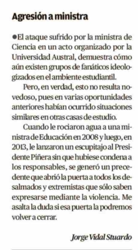 Cartas: Agresión a ministra