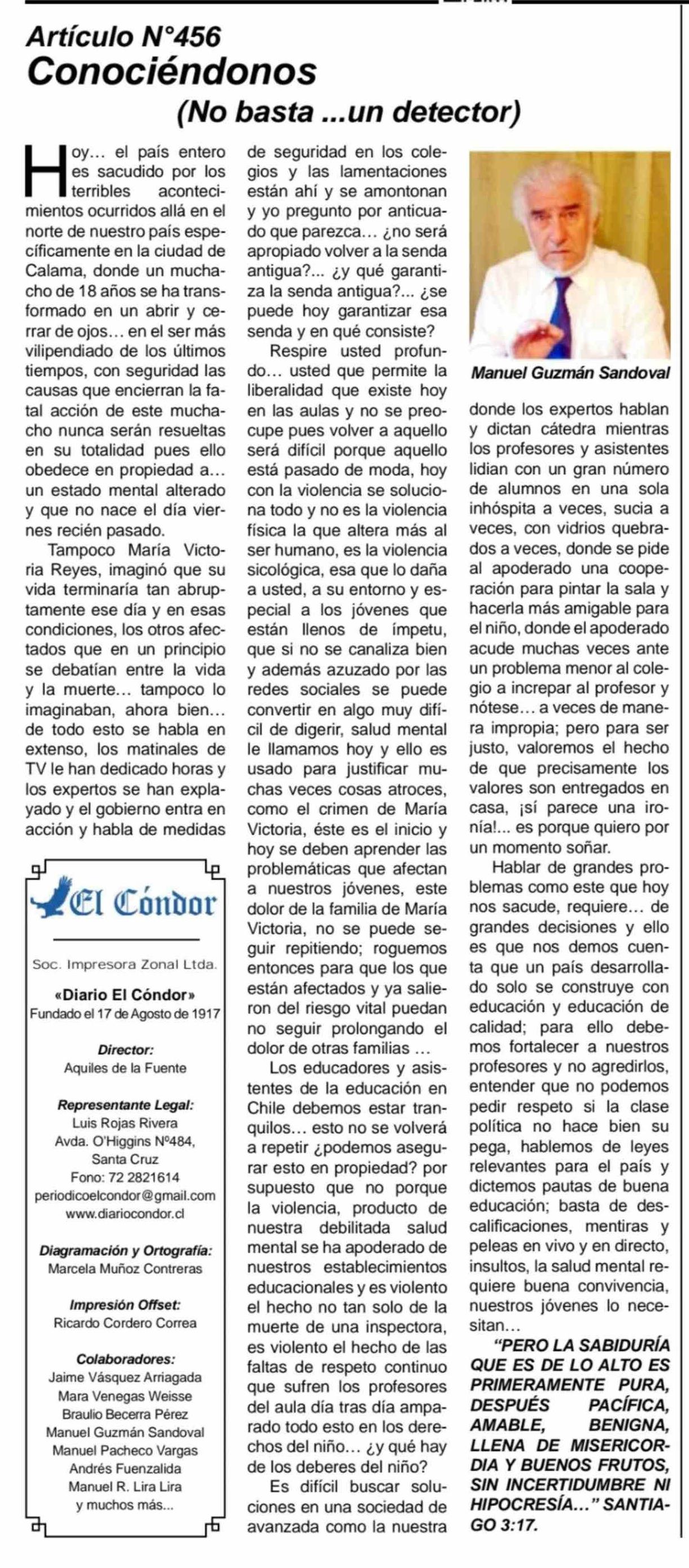 Columnas de Opinión: Artículo Nº456 Conociéndonos (No basta ... un detector)