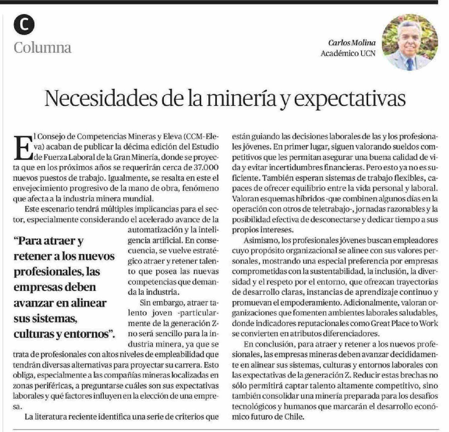 Columnas de Opinión: Necesidades de la minería y expectativas