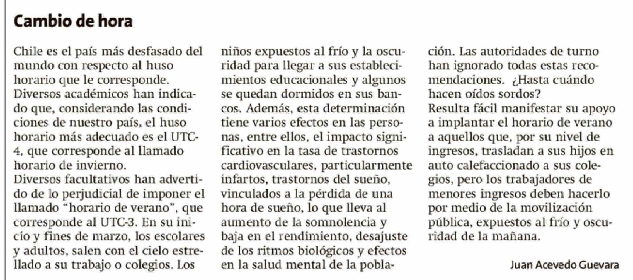 Columnas de Opinión: Cambio de hora