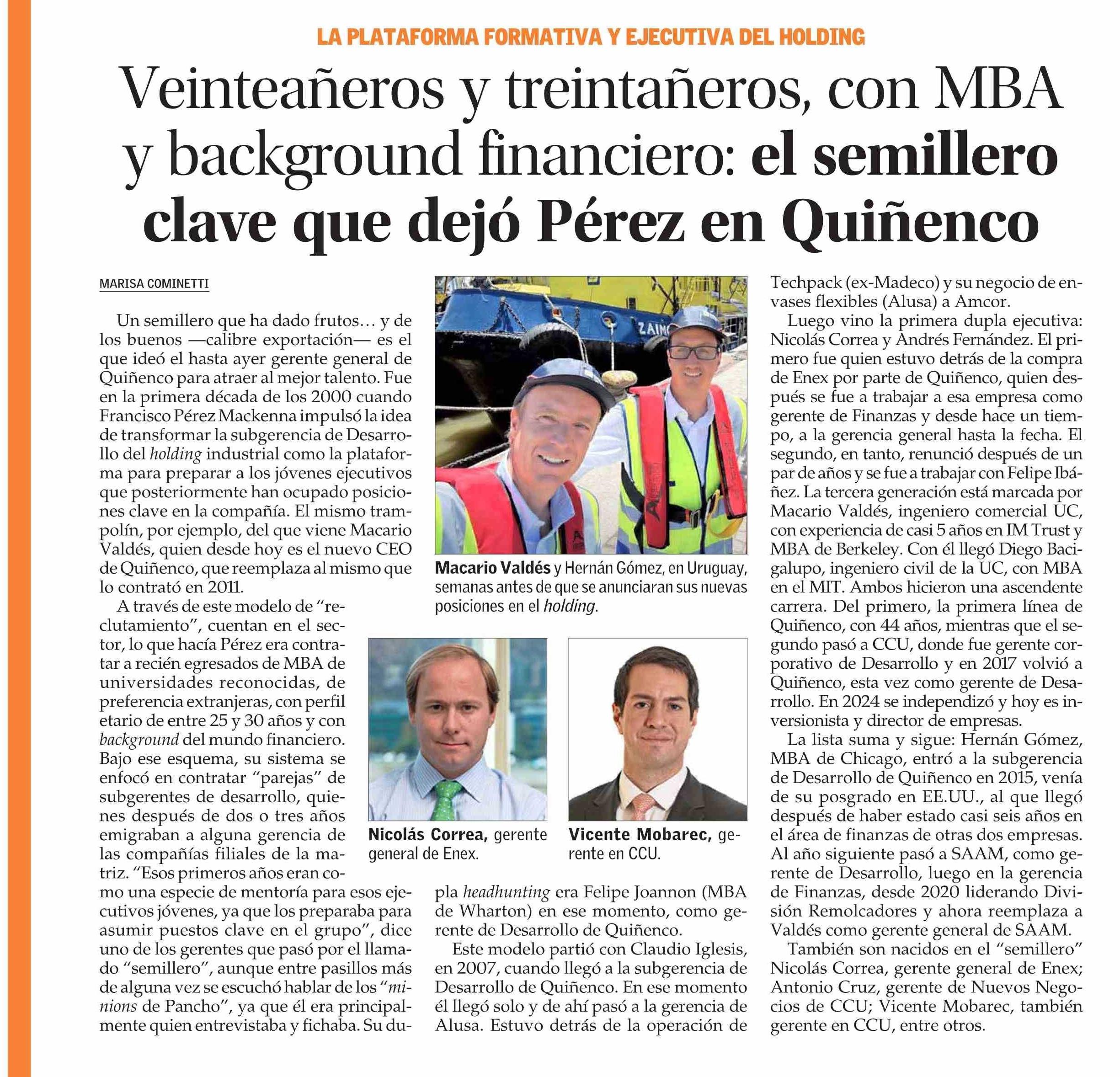 Veinteañeros y treintañeros, con MBA y background financiero: el semillero clave que dejó Pérez en Quiñenco