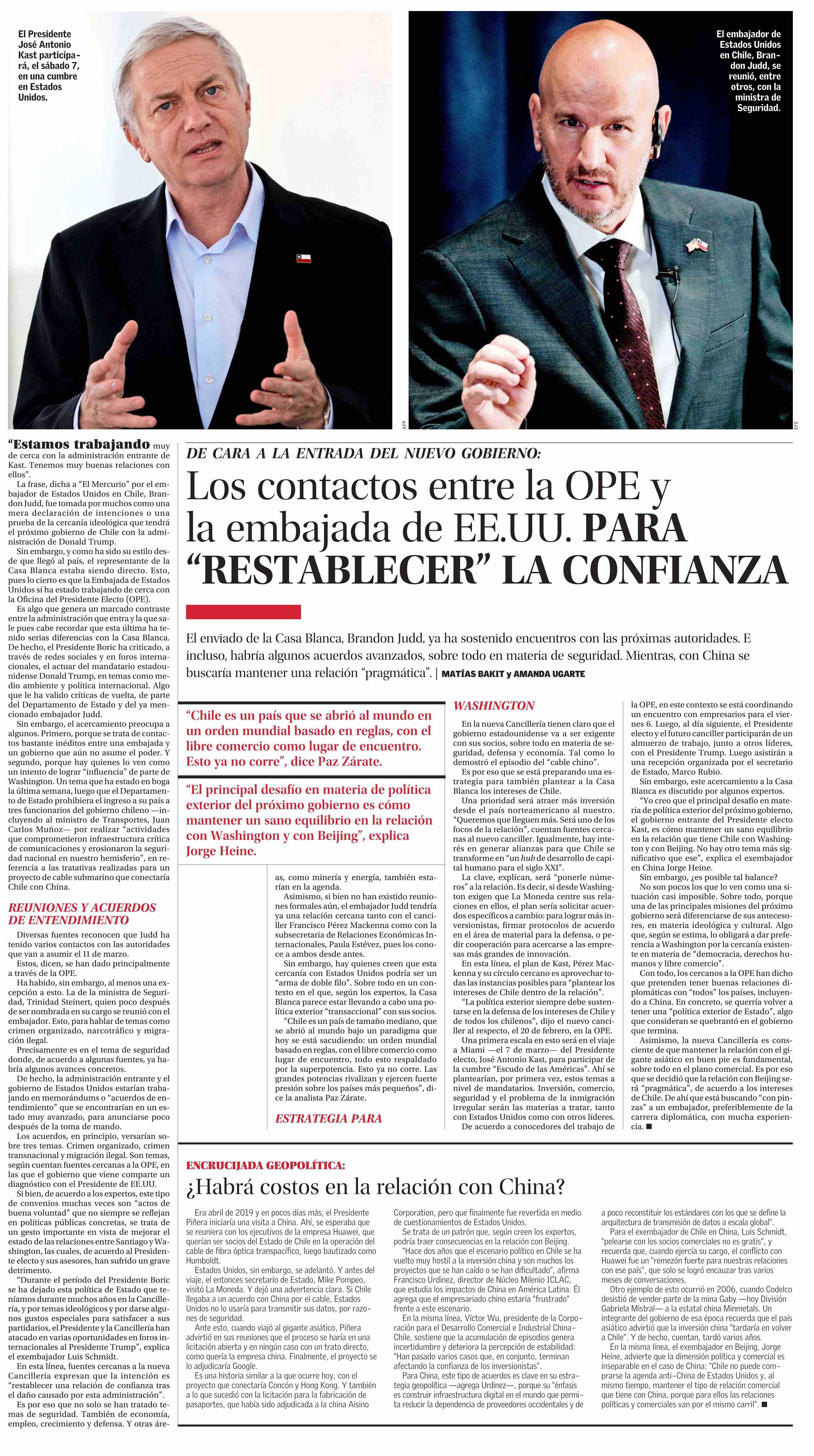 Los contactos entre la OPE y la embajada de EE.UU. PARA “RESTABLECER” LA CONFIANZA