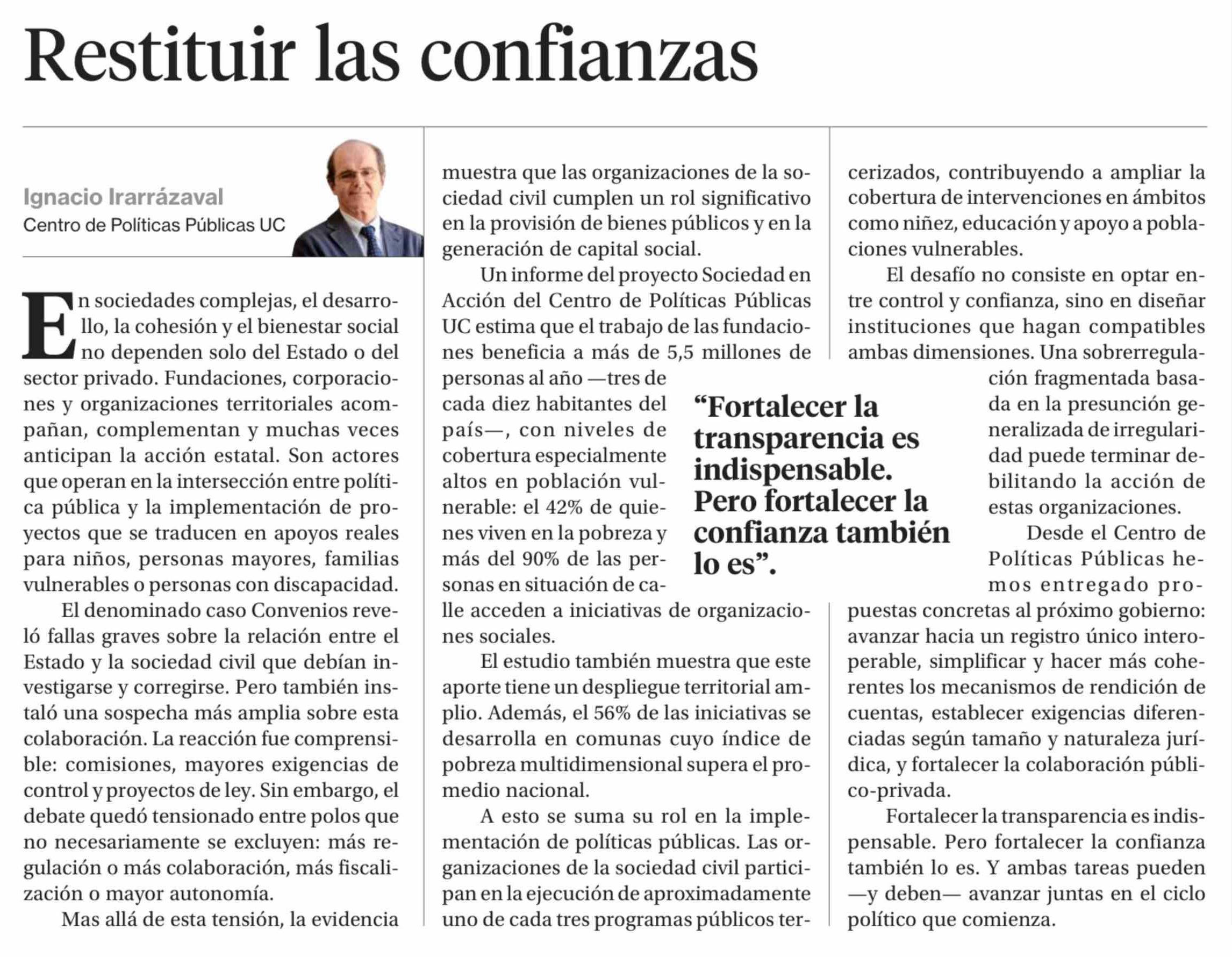 Título: Columnas de Opinión: Restituir las confianzas