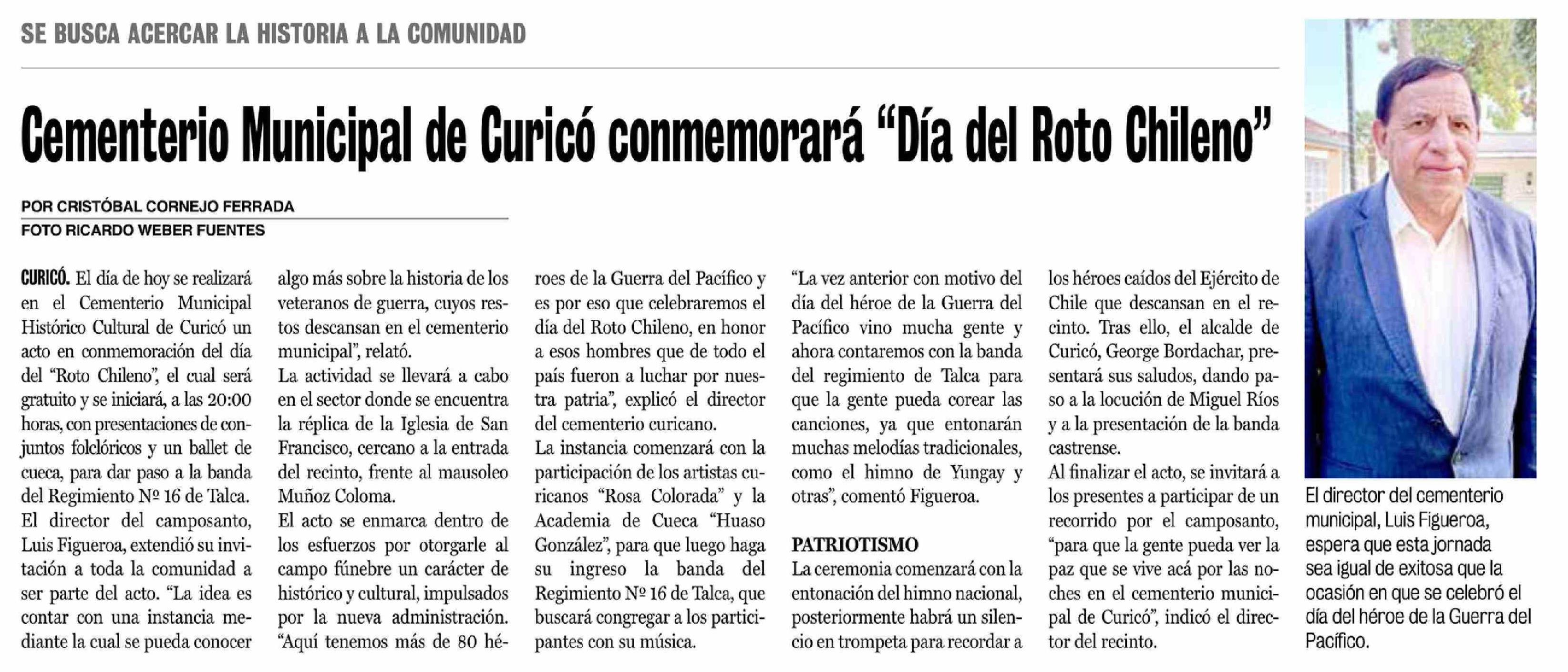 Cementerio Municipal de Curicó conmemorará "Día del Roto Chileno"