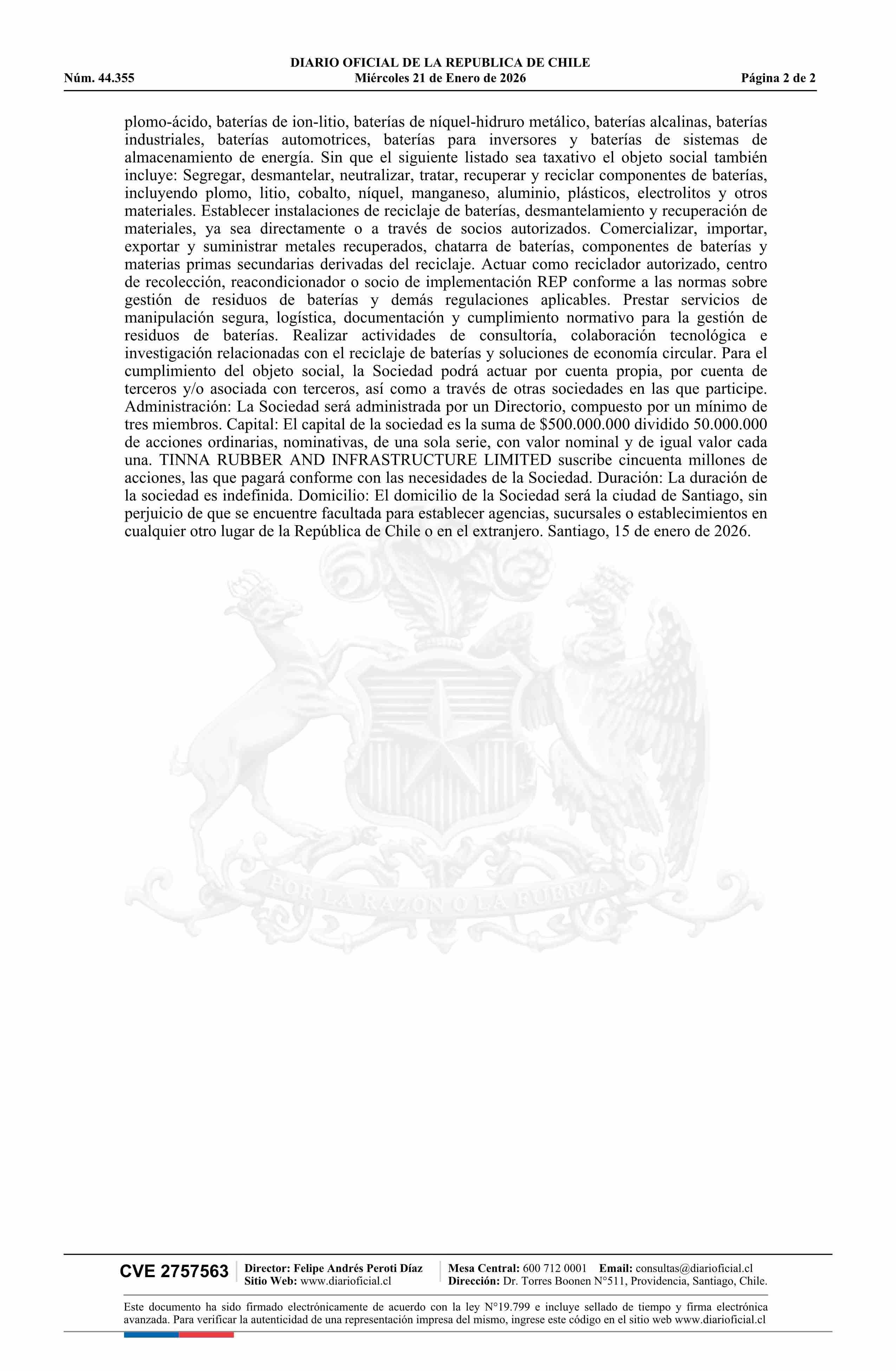 Diario Oficial Edición Electrónica (Diario Oficial de Chile - 5 Empresas Y Cooper)